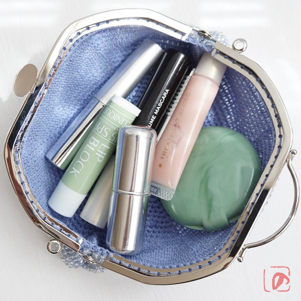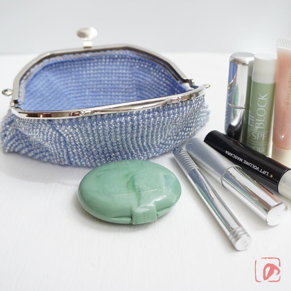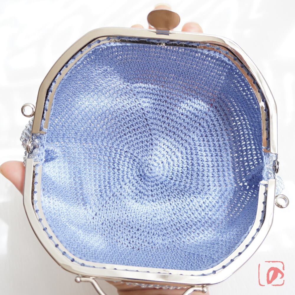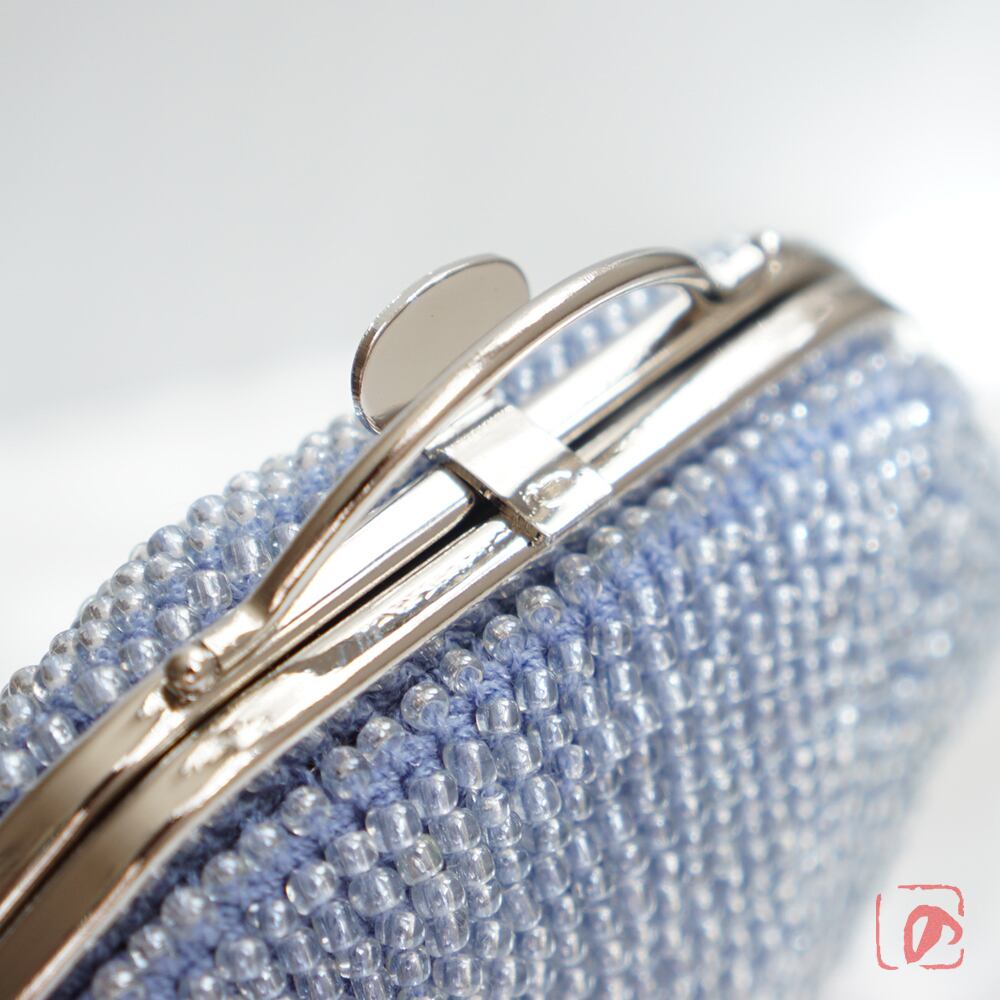 3mmのガラスビーズをひとつぶづつ、全面に編み込んでポーチに仕上げました。