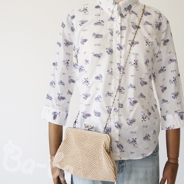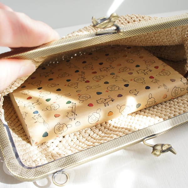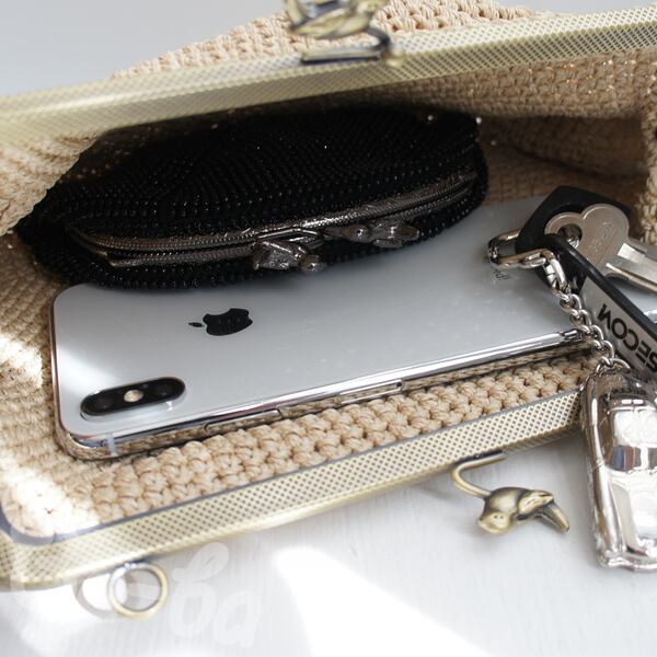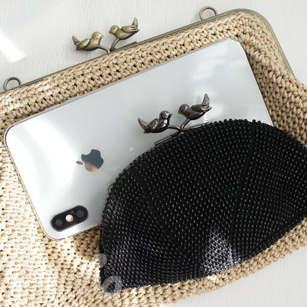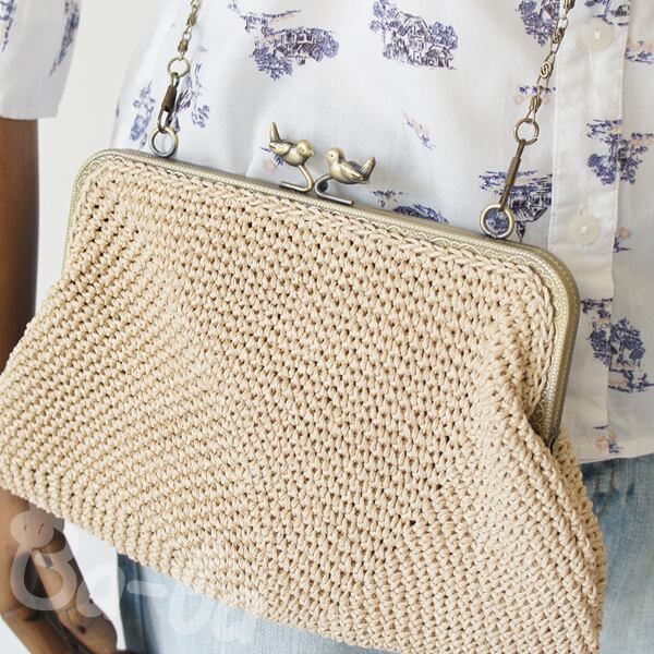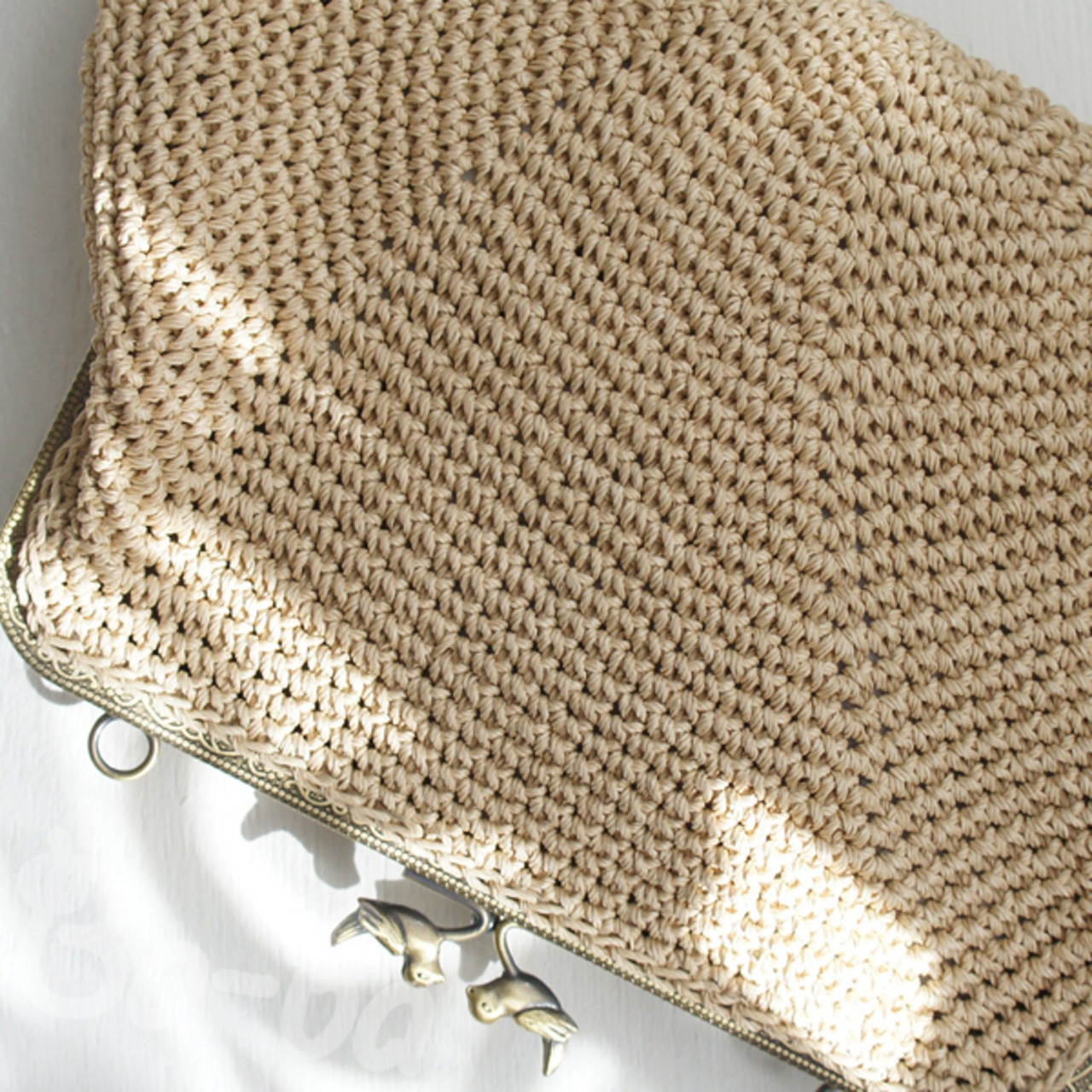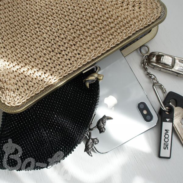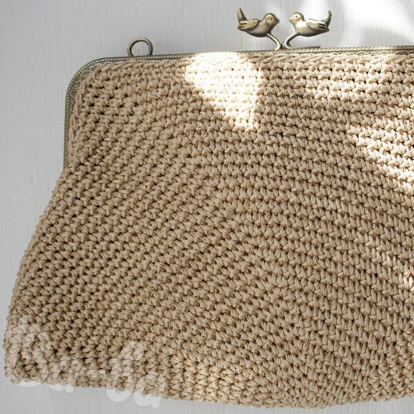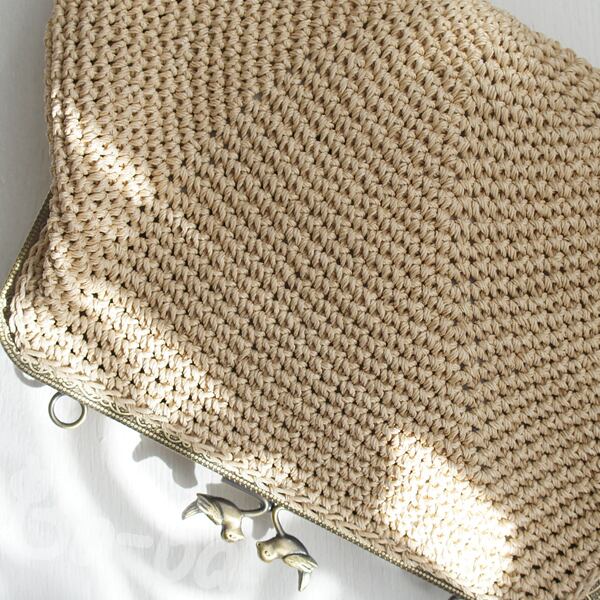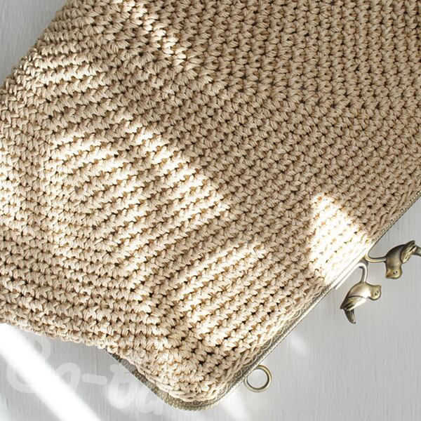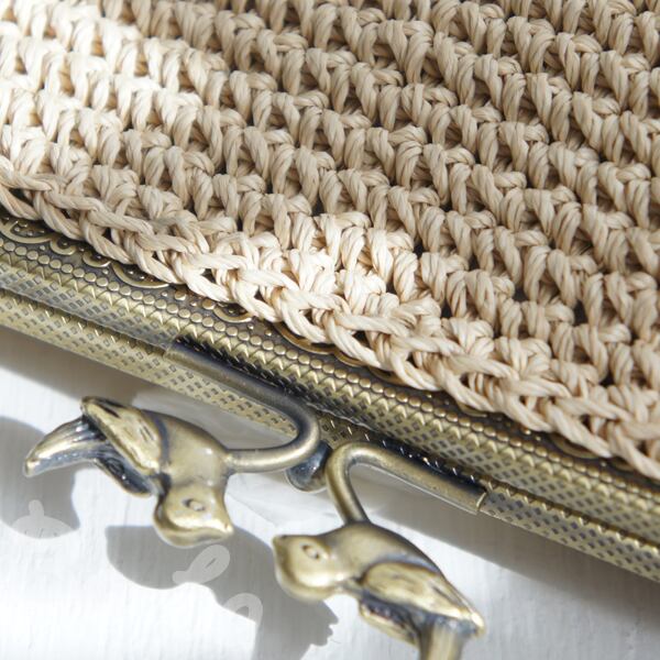 さらっとした編み地に、存在感のある小鳥つまみのスクエア口金を組み合わせました。