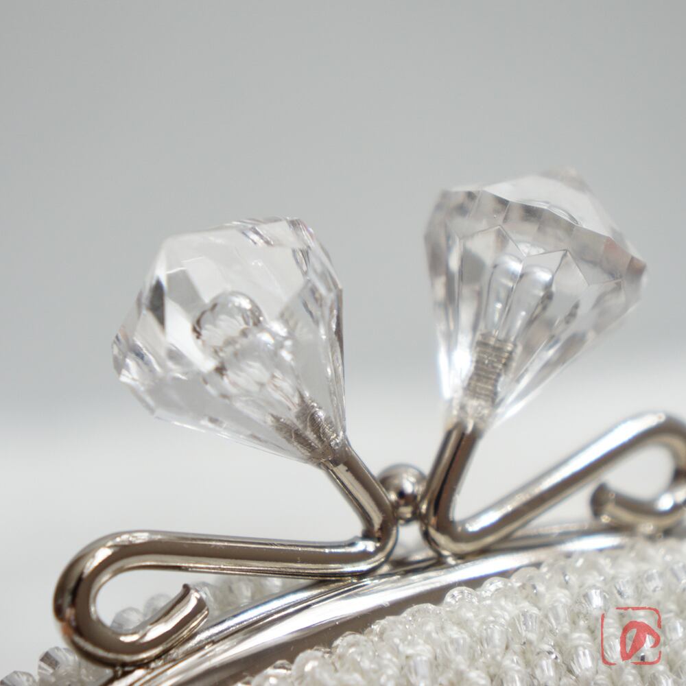 口金 : シルバー、クリアダイヤつまみ、12.5cm、くし型、両カン