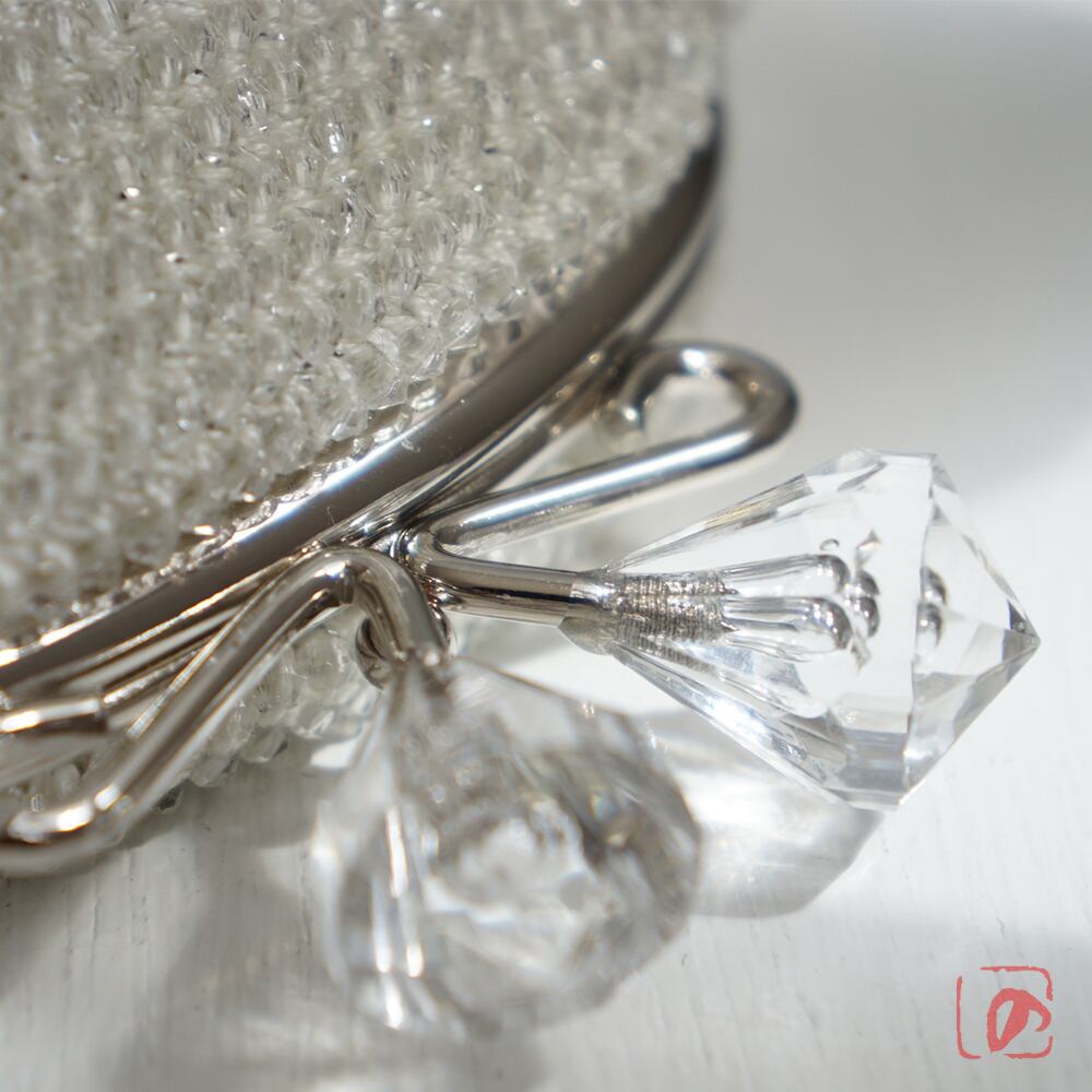 そろばん型のビーズとダイヤ型のつまみがキラキラと輝きます。