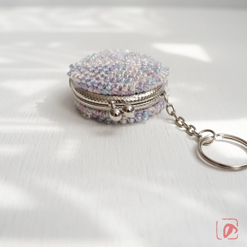 糸のパステルカラーが透けるように、クリアガラスビーズを使用しました。