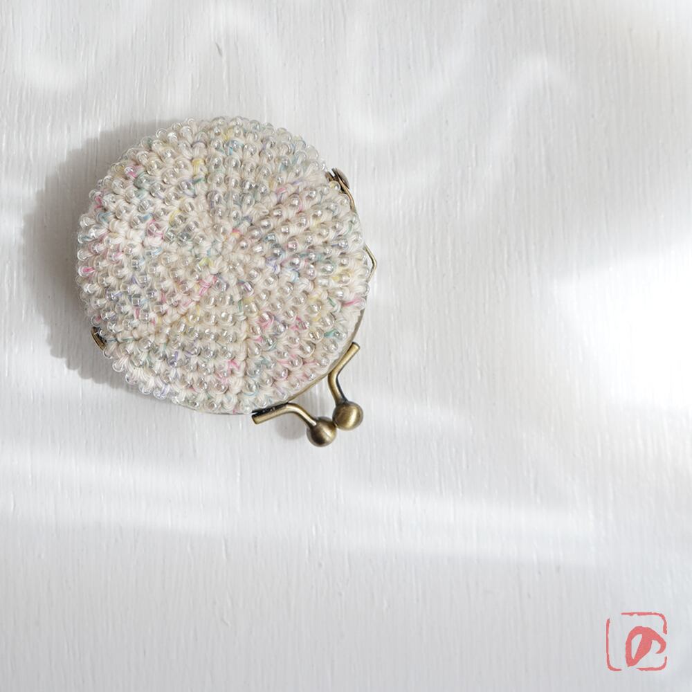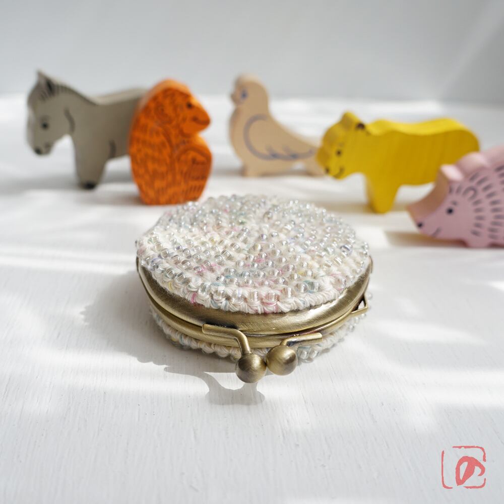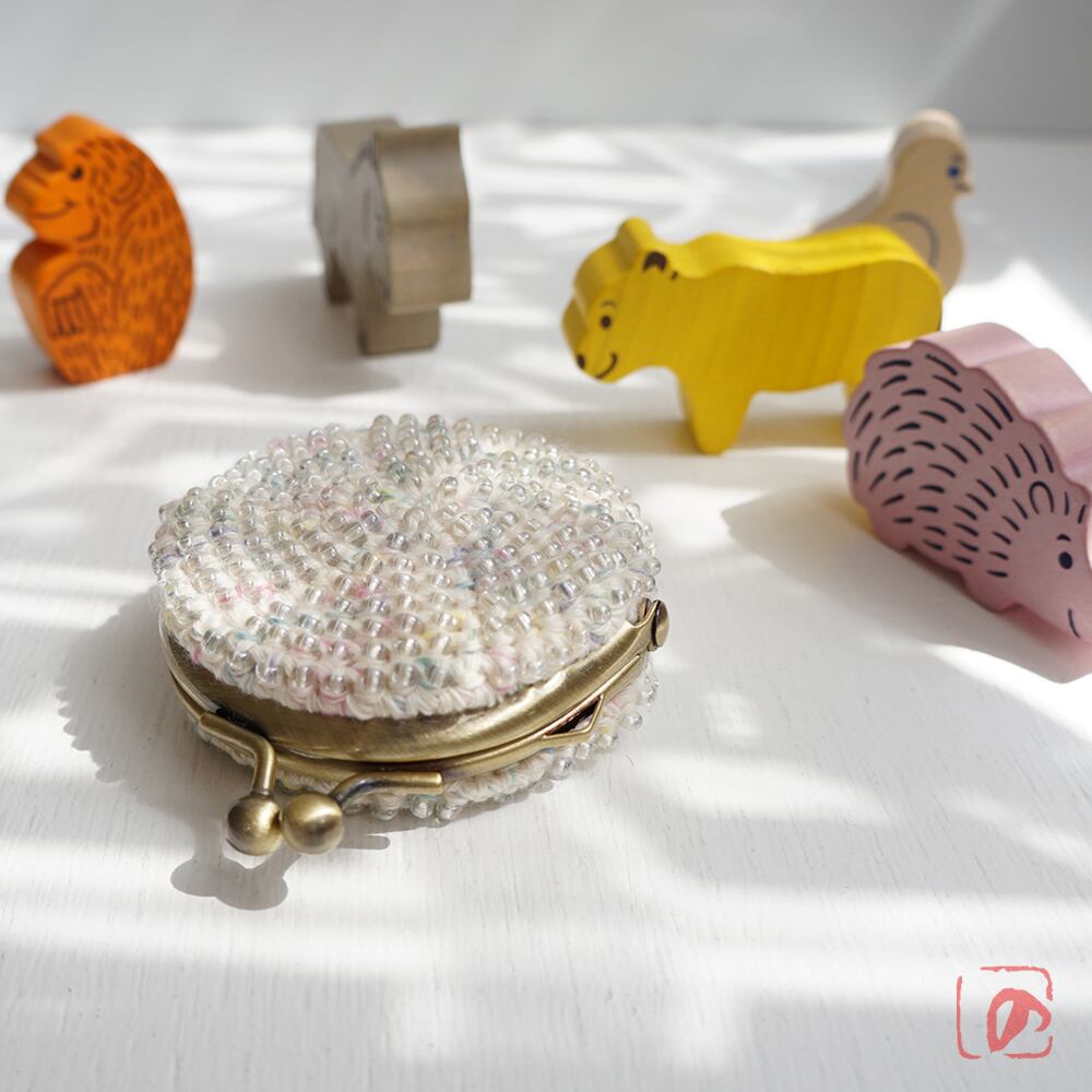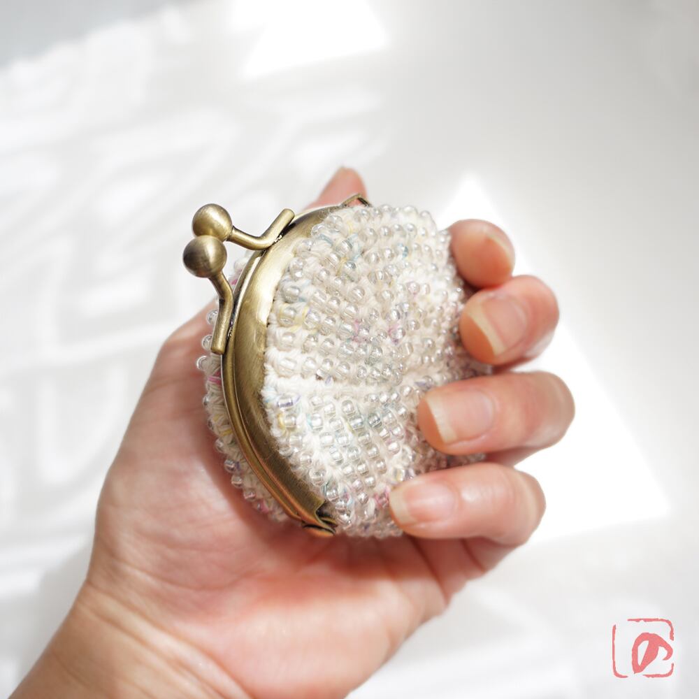 ガラスビーズをひとつぶづつ編み込んだがま口です。