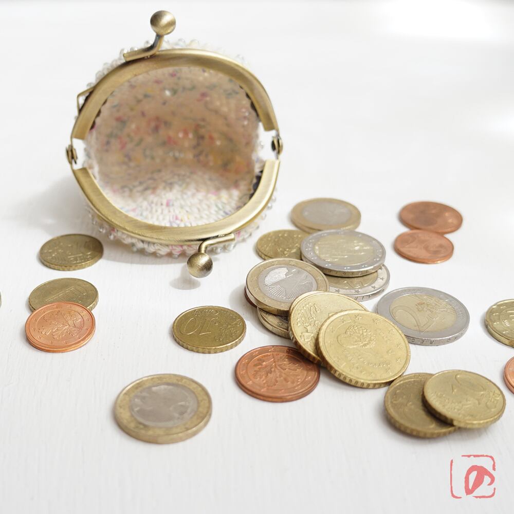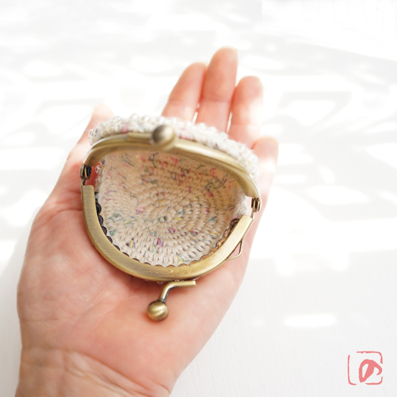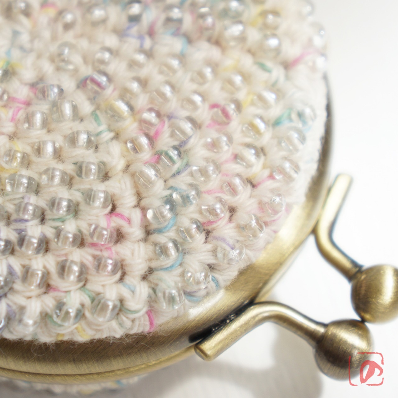 ガラスビーズをひとつぶづつ編み込んだがま口です。