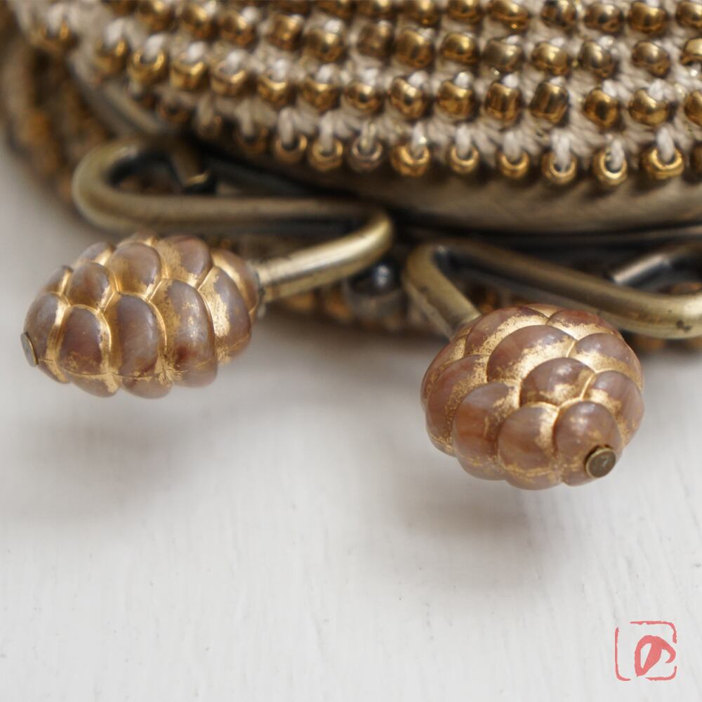 ドイツ製ヴィンテージのほっこりカワイイ松ぼっくりのビーズをつまみ部分に使用、