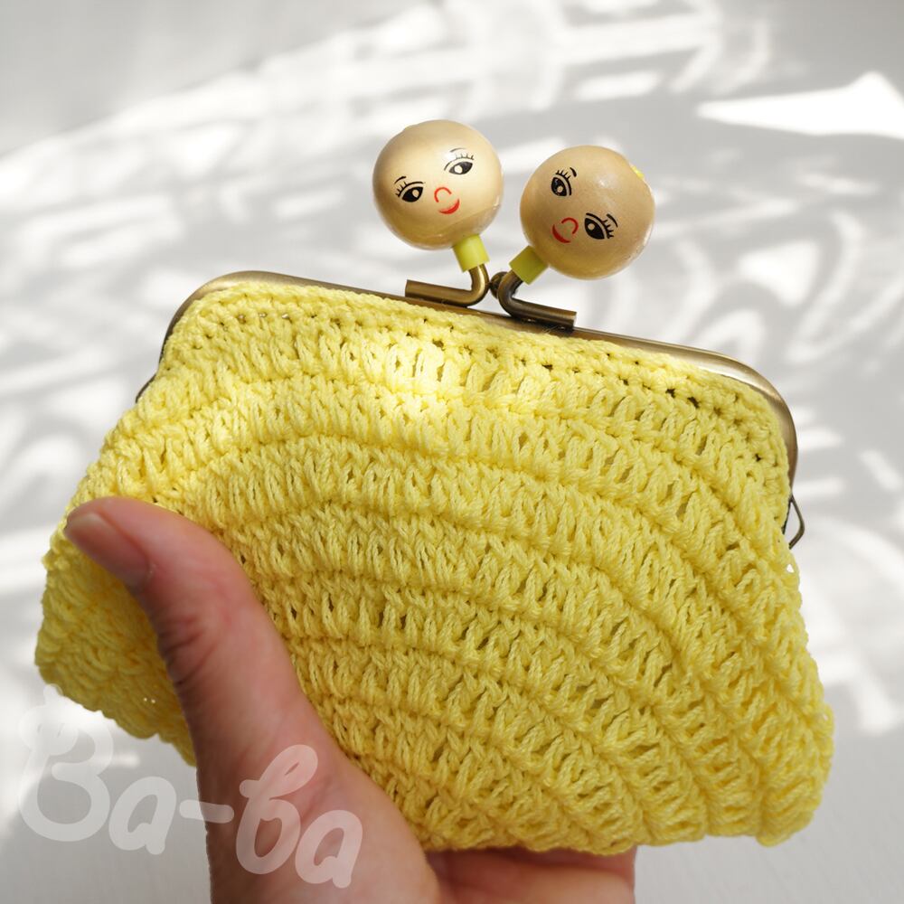 ばあば作☆長編みの福笑がま口(まっきっき・C1475)