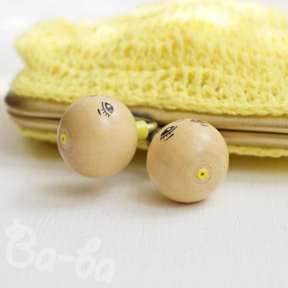 なんとも愛嬌のあるお顔のウッドビーズのつまみです。