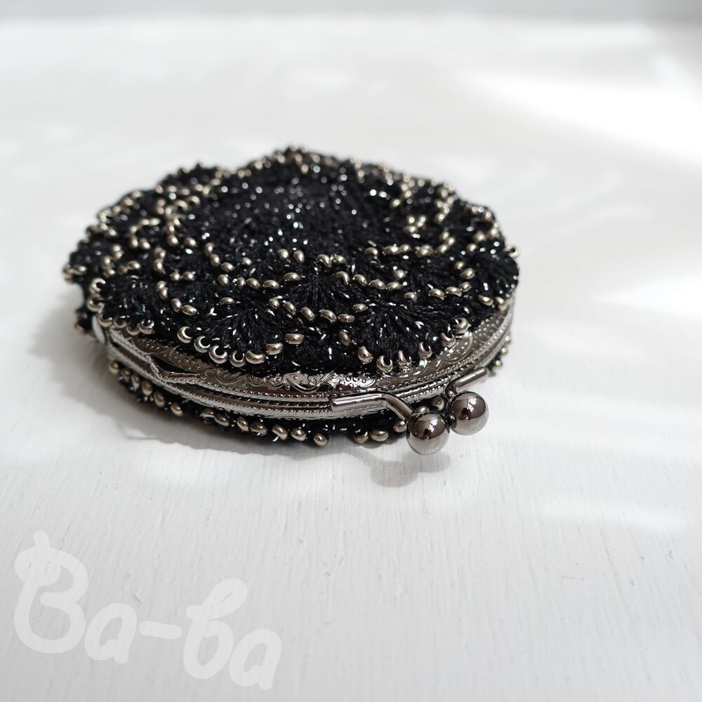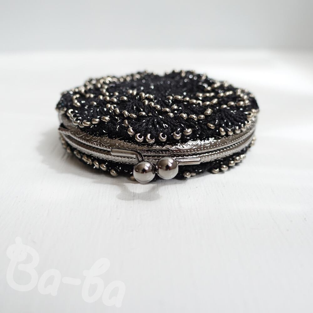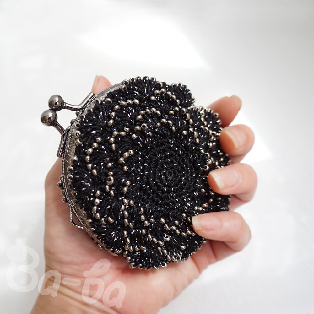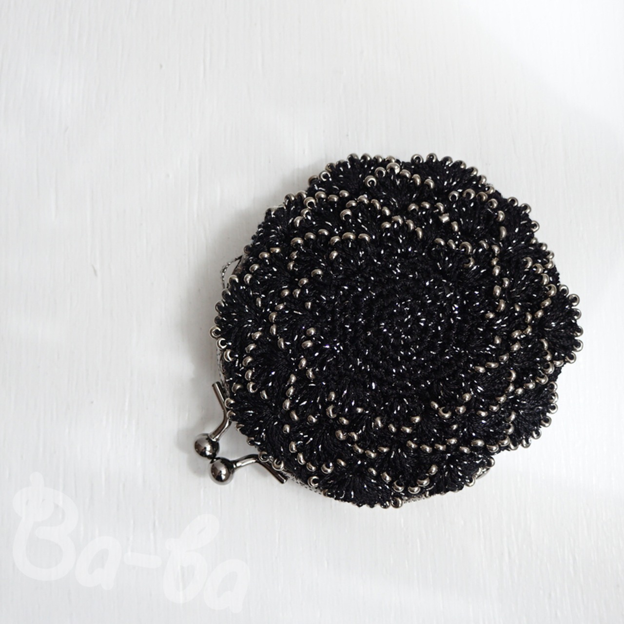 ばあば作、ビーズ入り松編み・まるまるがま口(scintillio・C1469)
