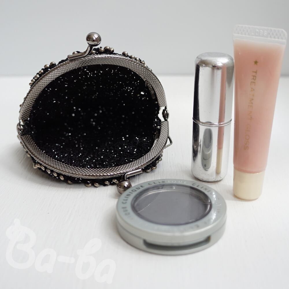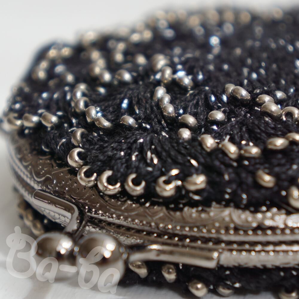編みがま口の軽量さと、ビーズの輝きを両方取り入れた作品です。