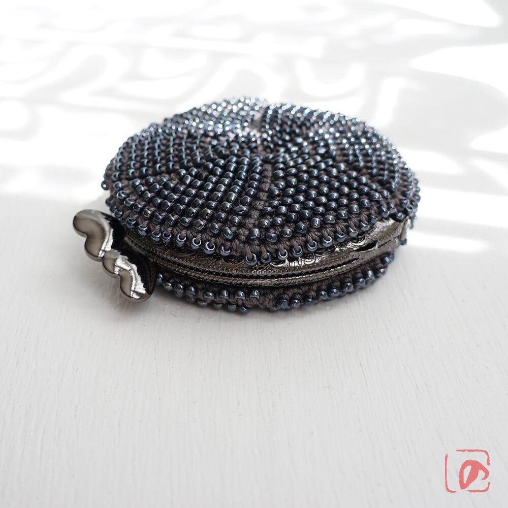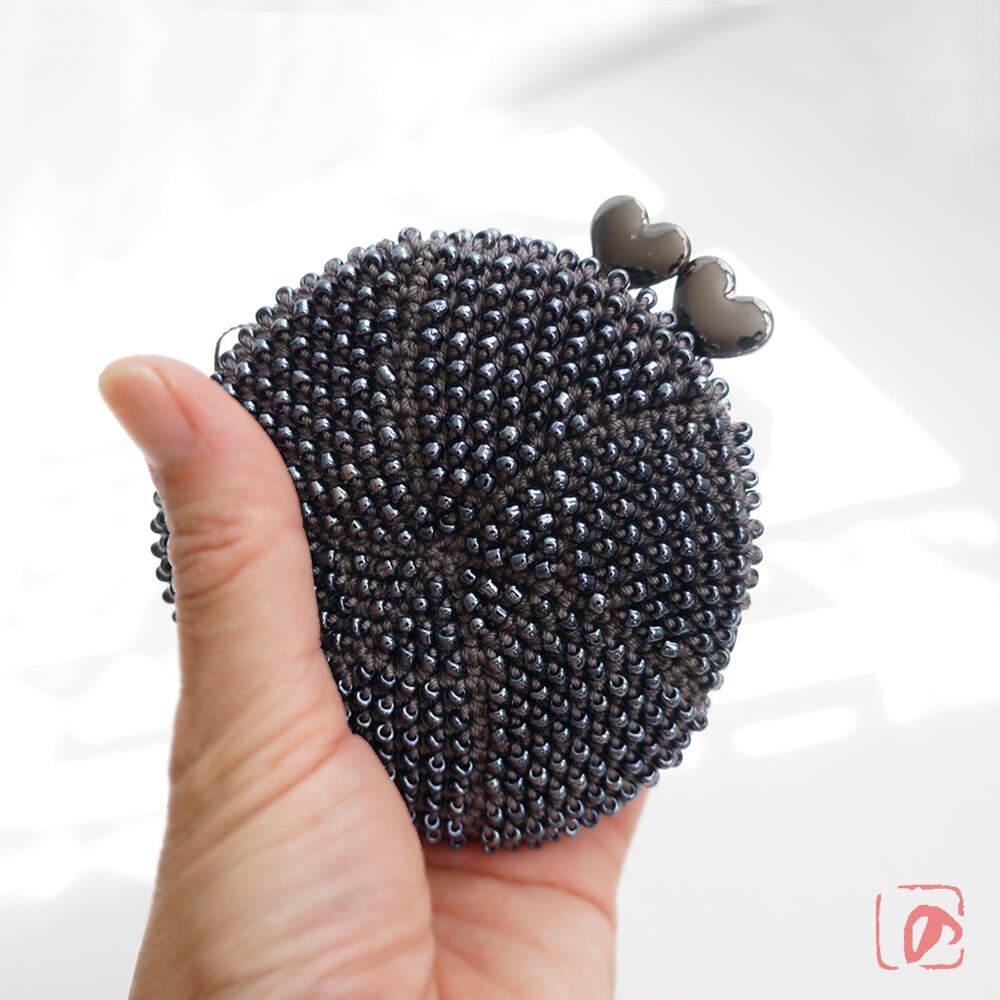 ばあば作 ♡ ガラスビーズのまんまるがま口(metallo nero・1518)