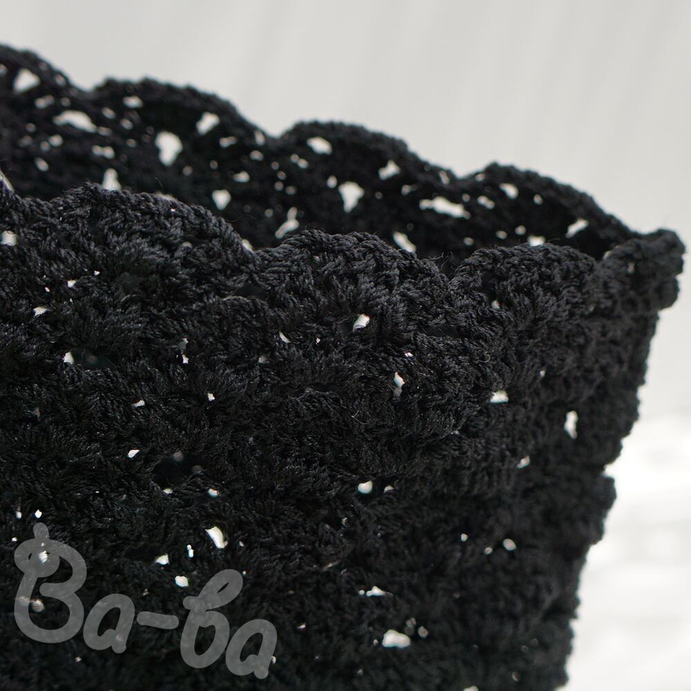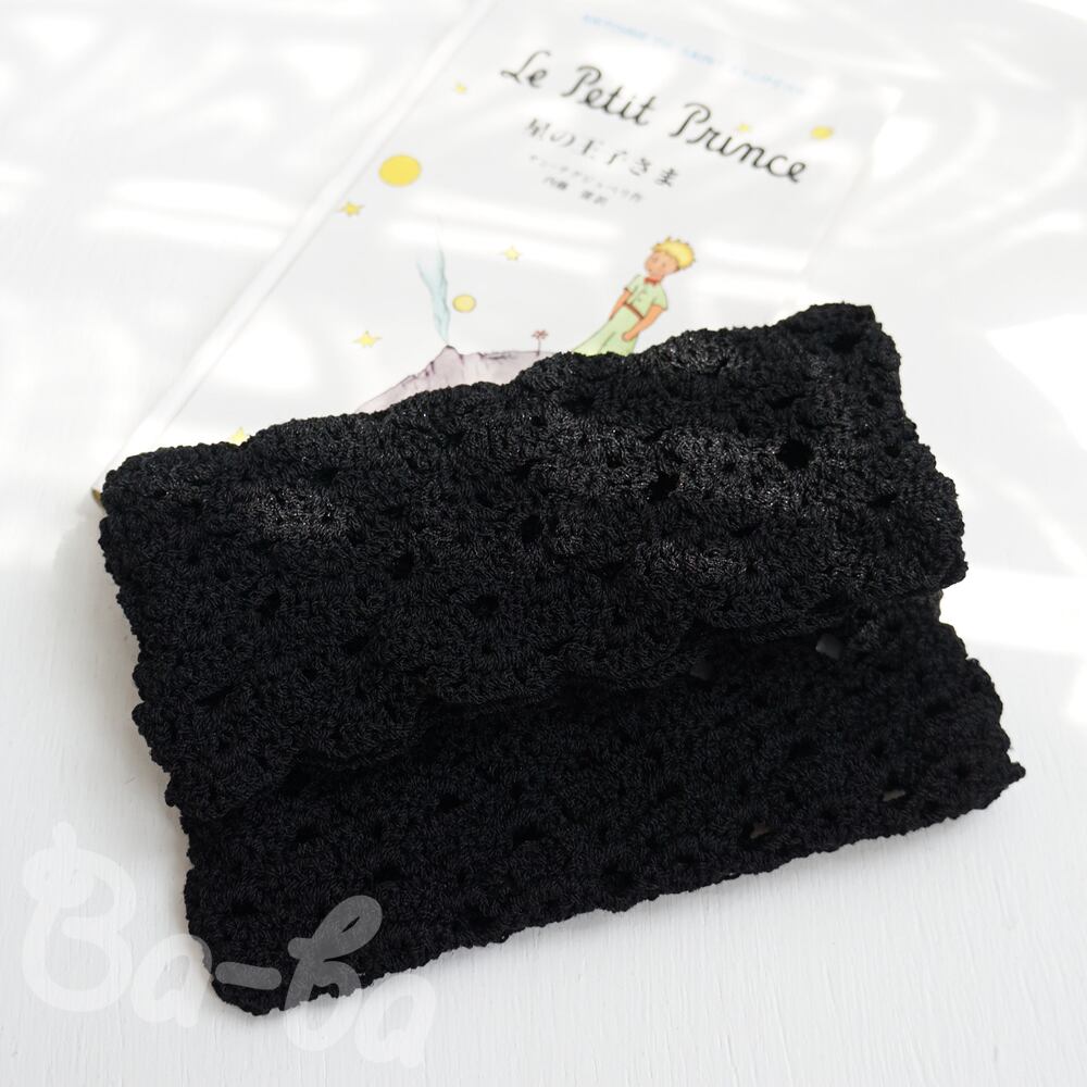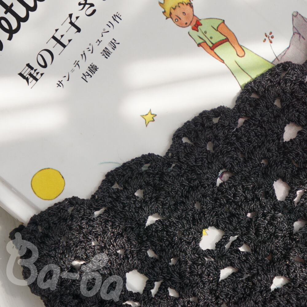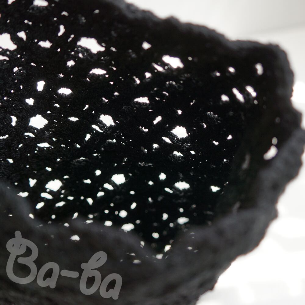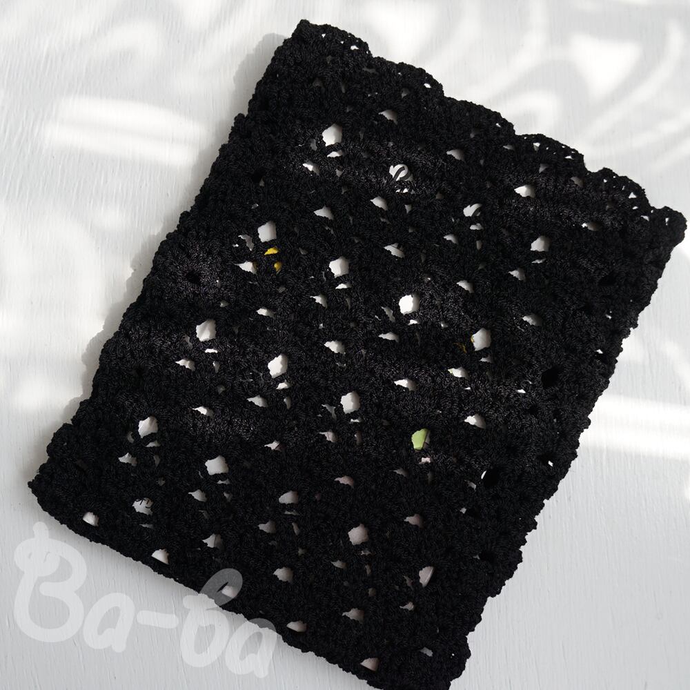 黒い混紡サマーヤーンをかぎ針で透かし編みにしました。