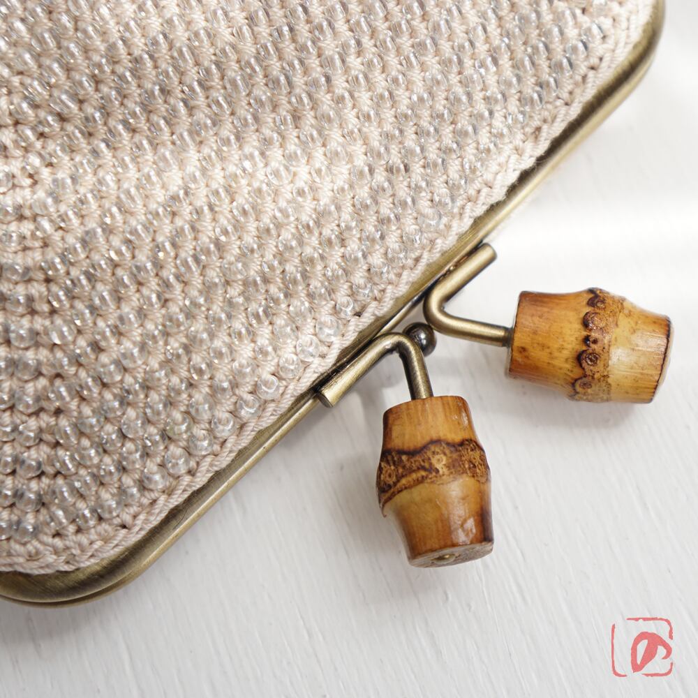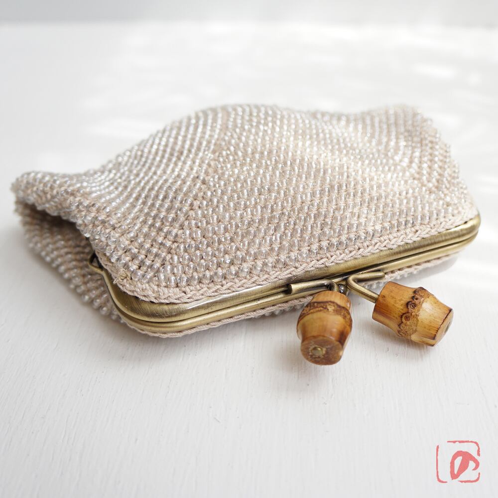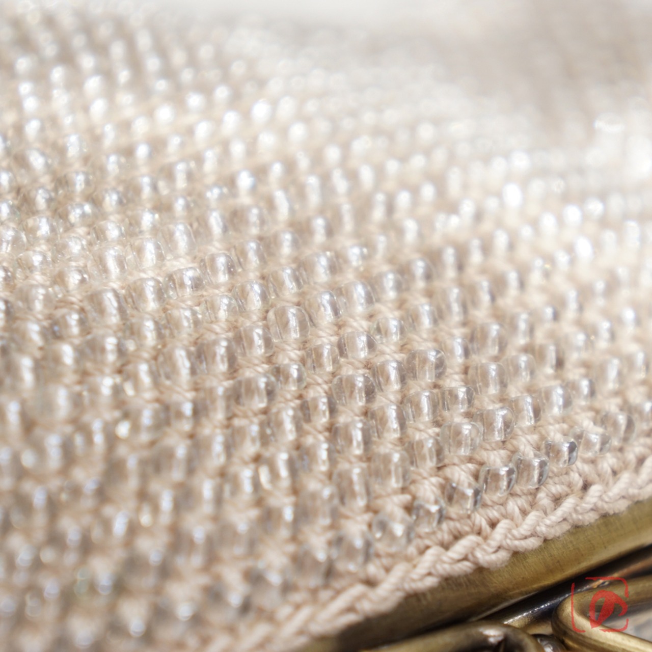 つやのある3mmクリアビーズを、ひとつぶづつ全面に編み込みました。