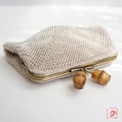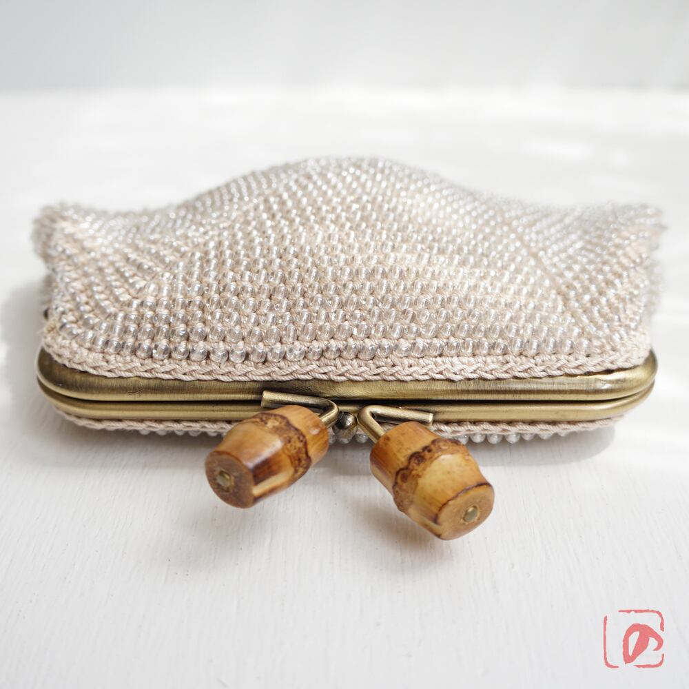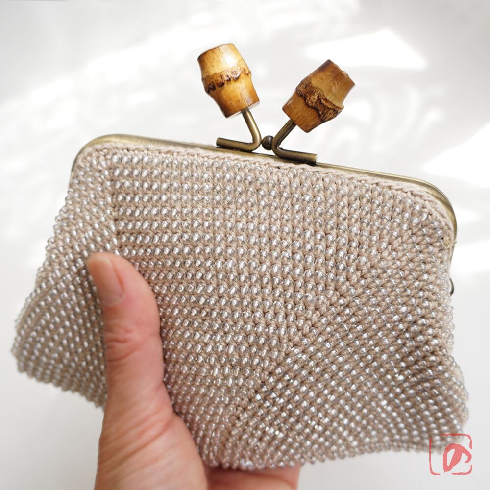 ばあば作☆☆さらに大きめ・ガラスビーズのスクエアがま口(bamboo・1494)