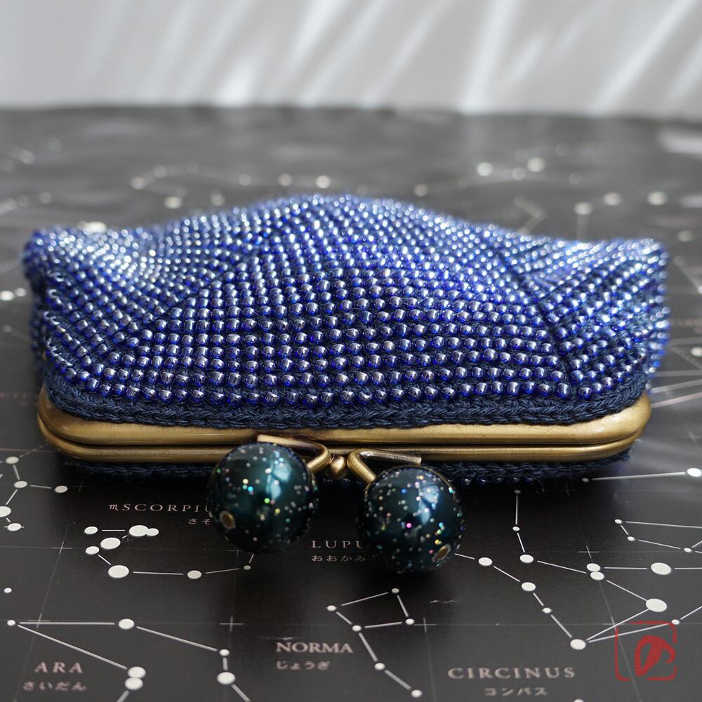 つやのある3mmクリアビーズを、ひとつぶづつ全面に編み込みました。