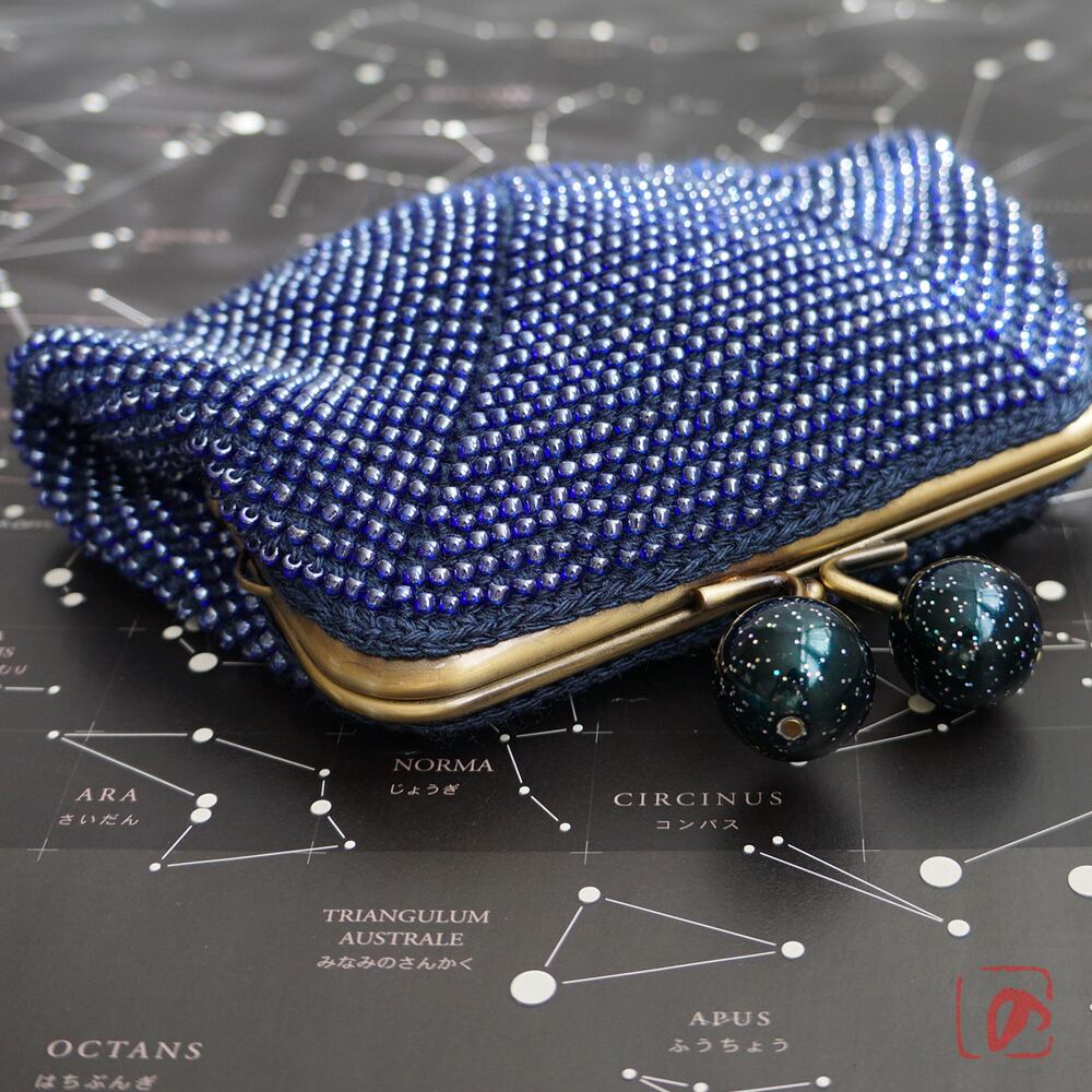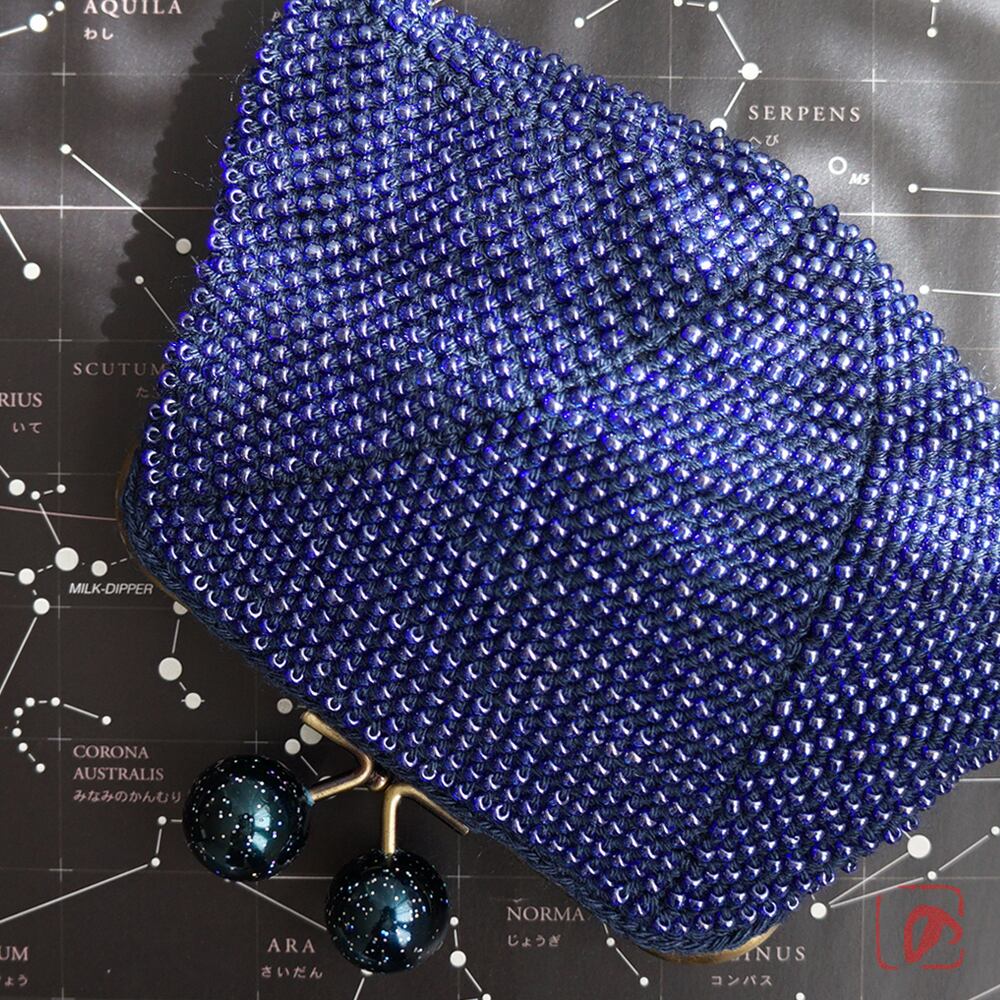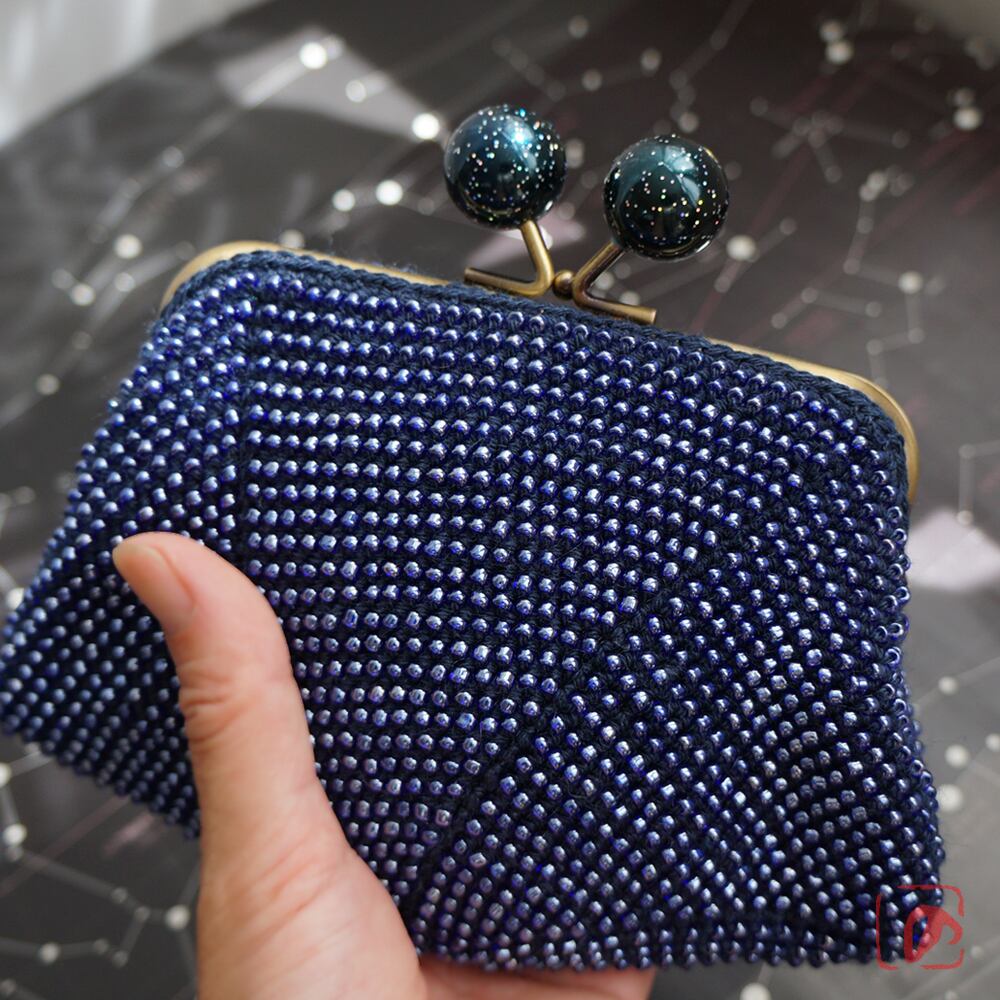 ばあば作☆☆さらに大きめ・ガラスビーズのスクエアがま口(Ganymede・1526)