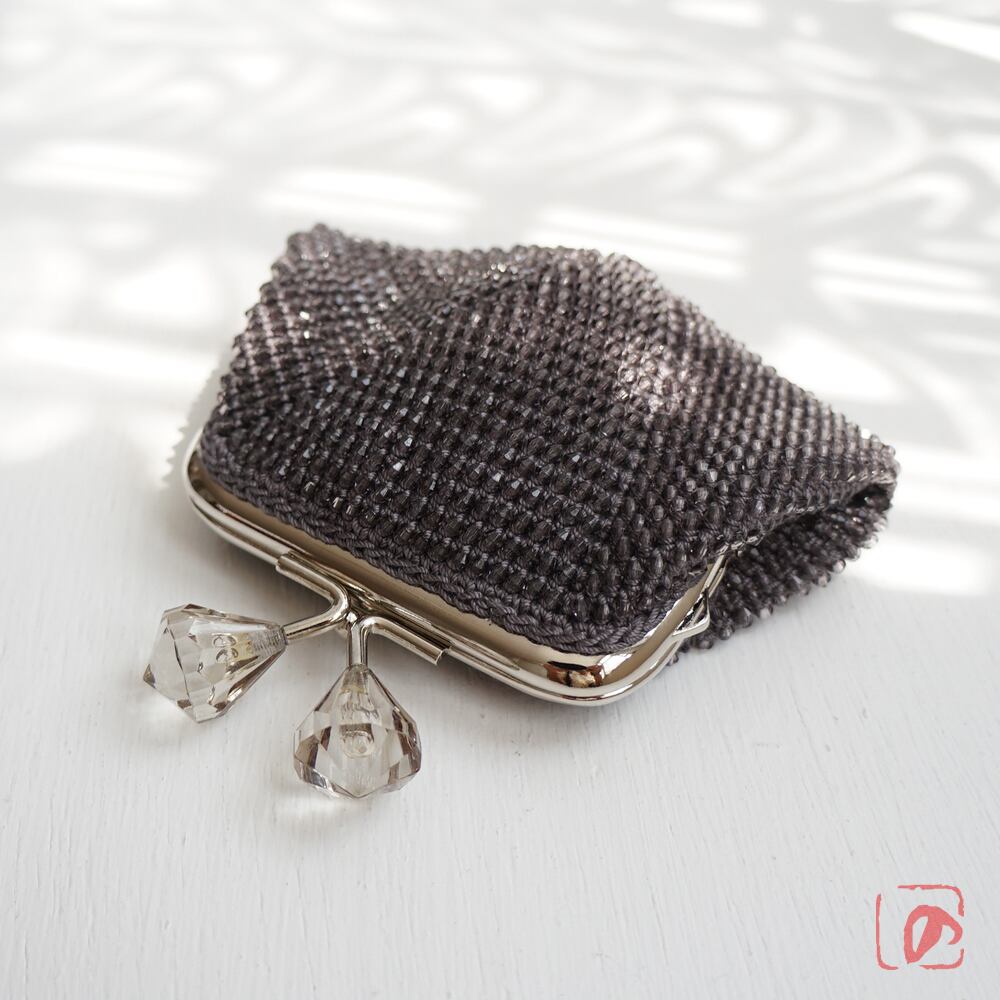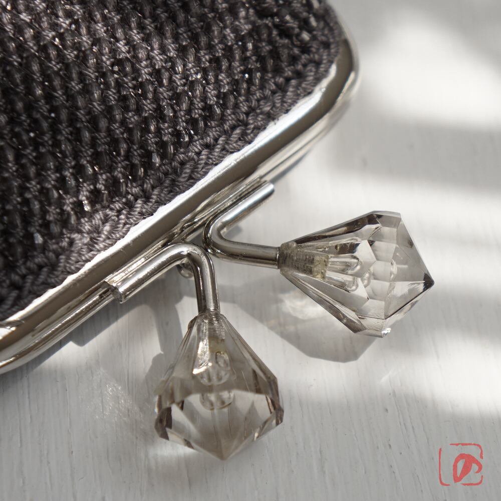 口金 : シルバー、クリアグレーダイヤつまみ、8.5cm、角型、片カン