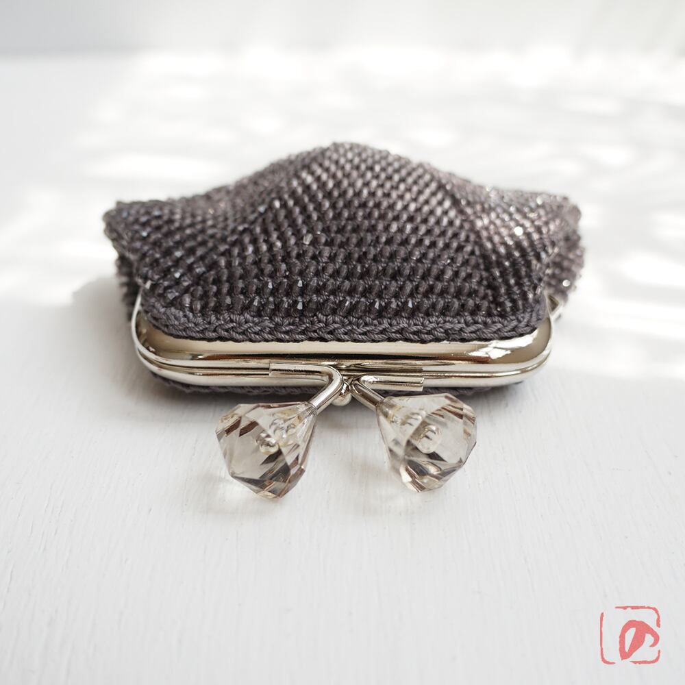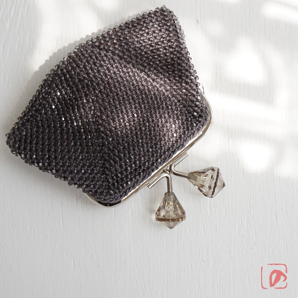 ばあば作☆アクリルビーズのスクエアがま口(cleargray・1486)