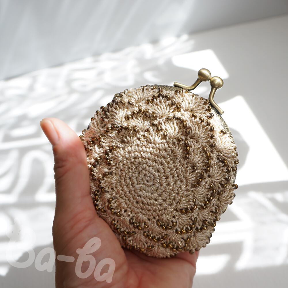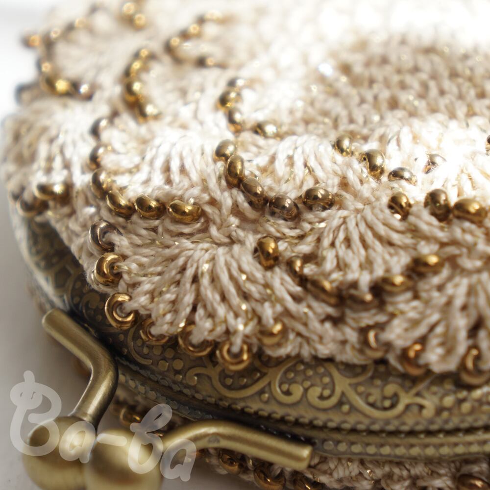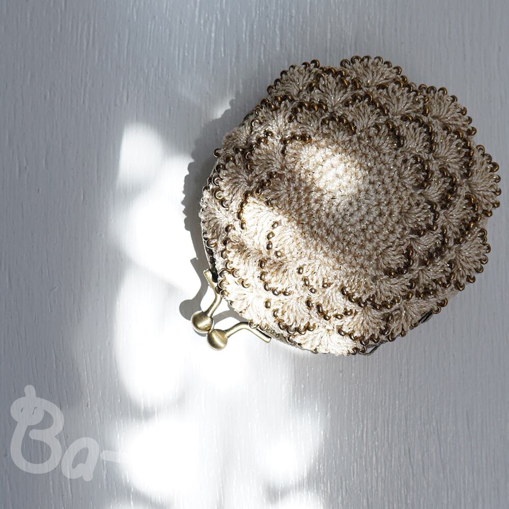 ばあば作、ビーズ入り松編み・まるまるがま口(médaille d'or・C1480)
