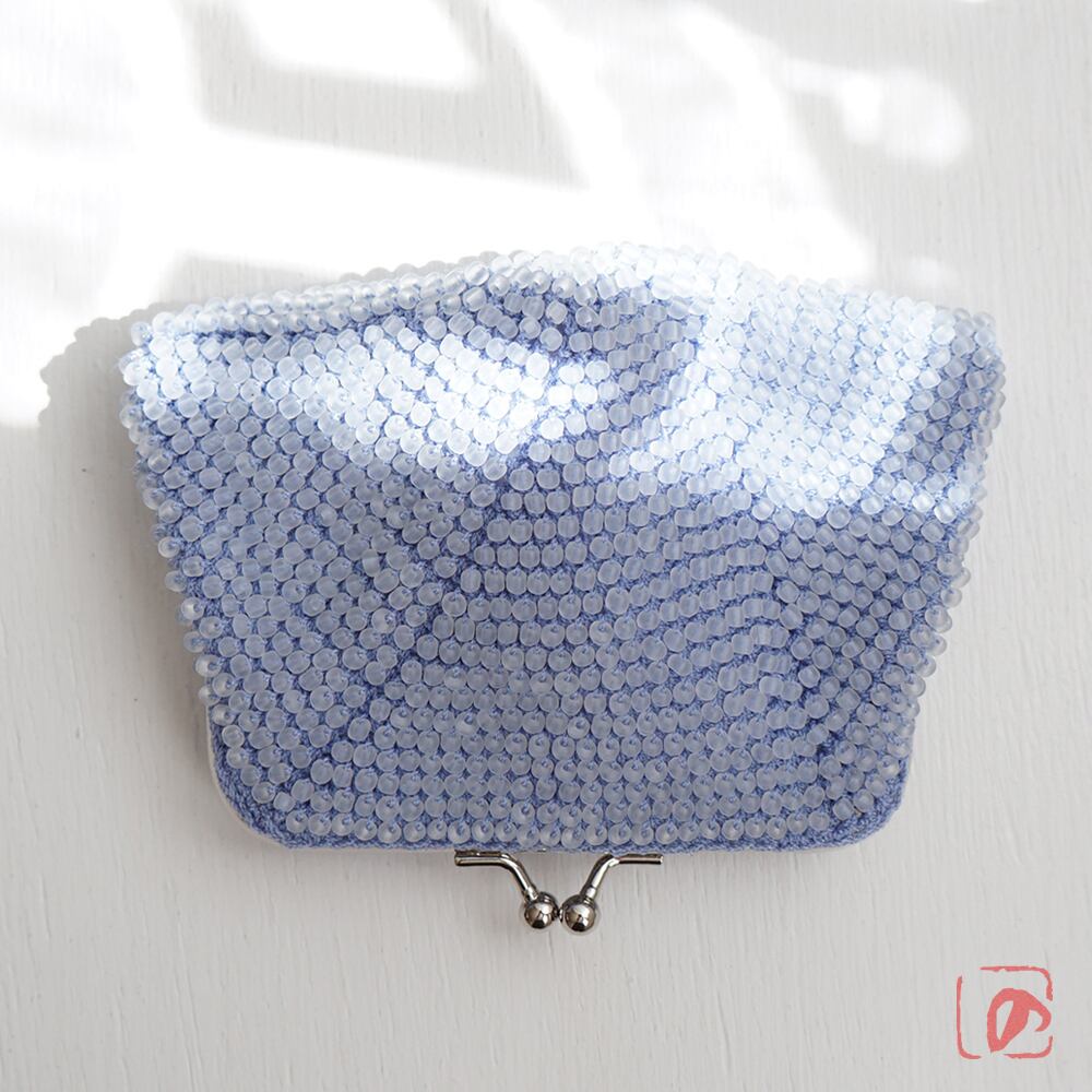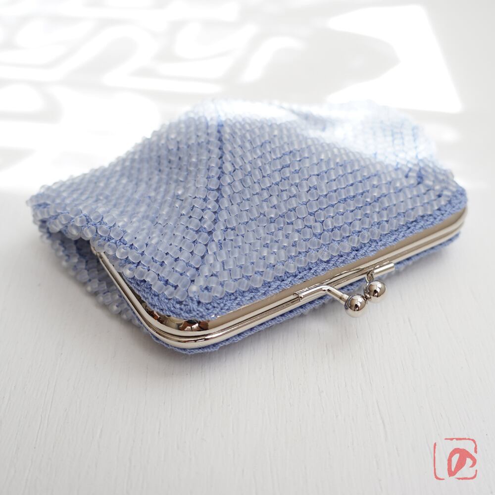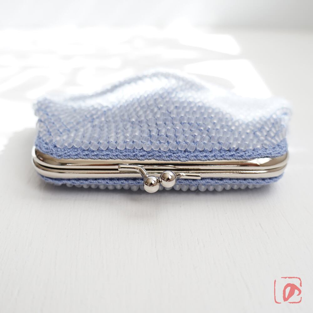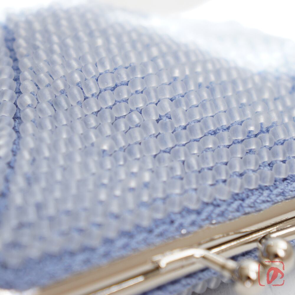 涼しげな3mmのフロストガラスビーズをひとつぶづつ、全面に編み込みました。