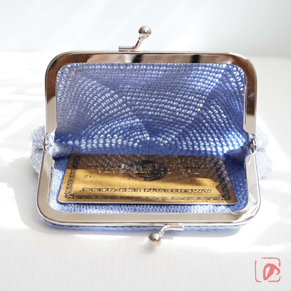 ばあば作☆大きめ・総ガラスビーズのスクエアがま口(coolblue・1514)