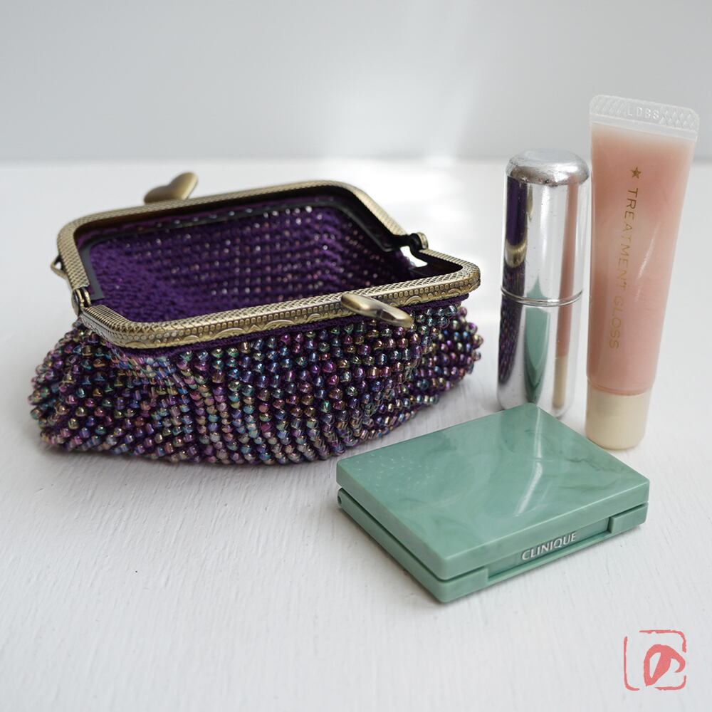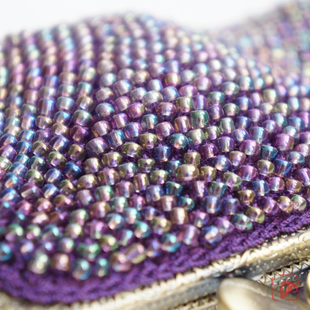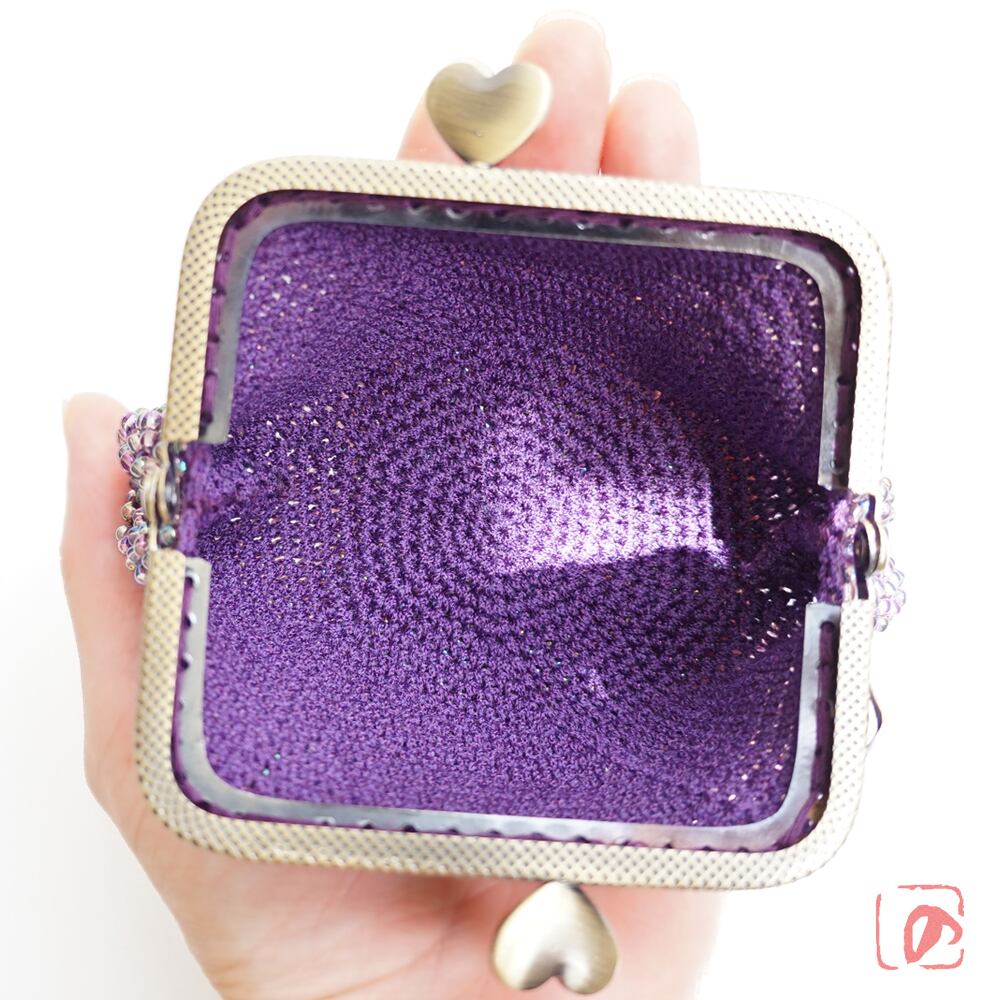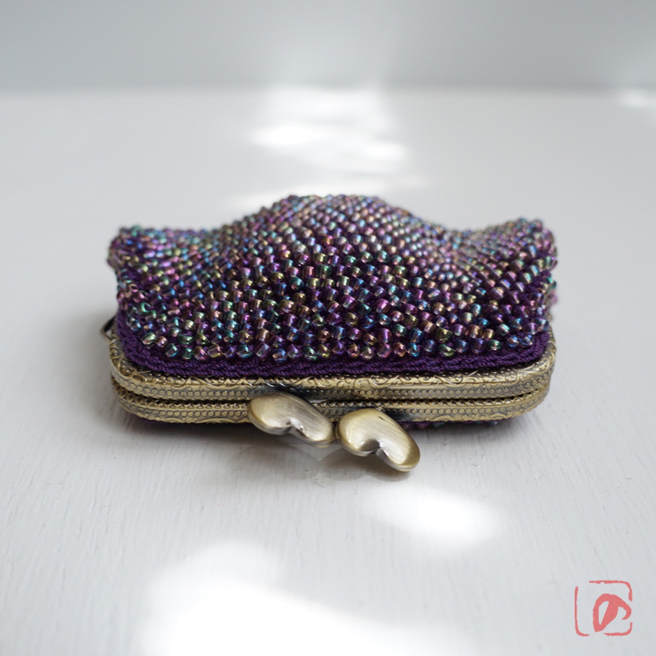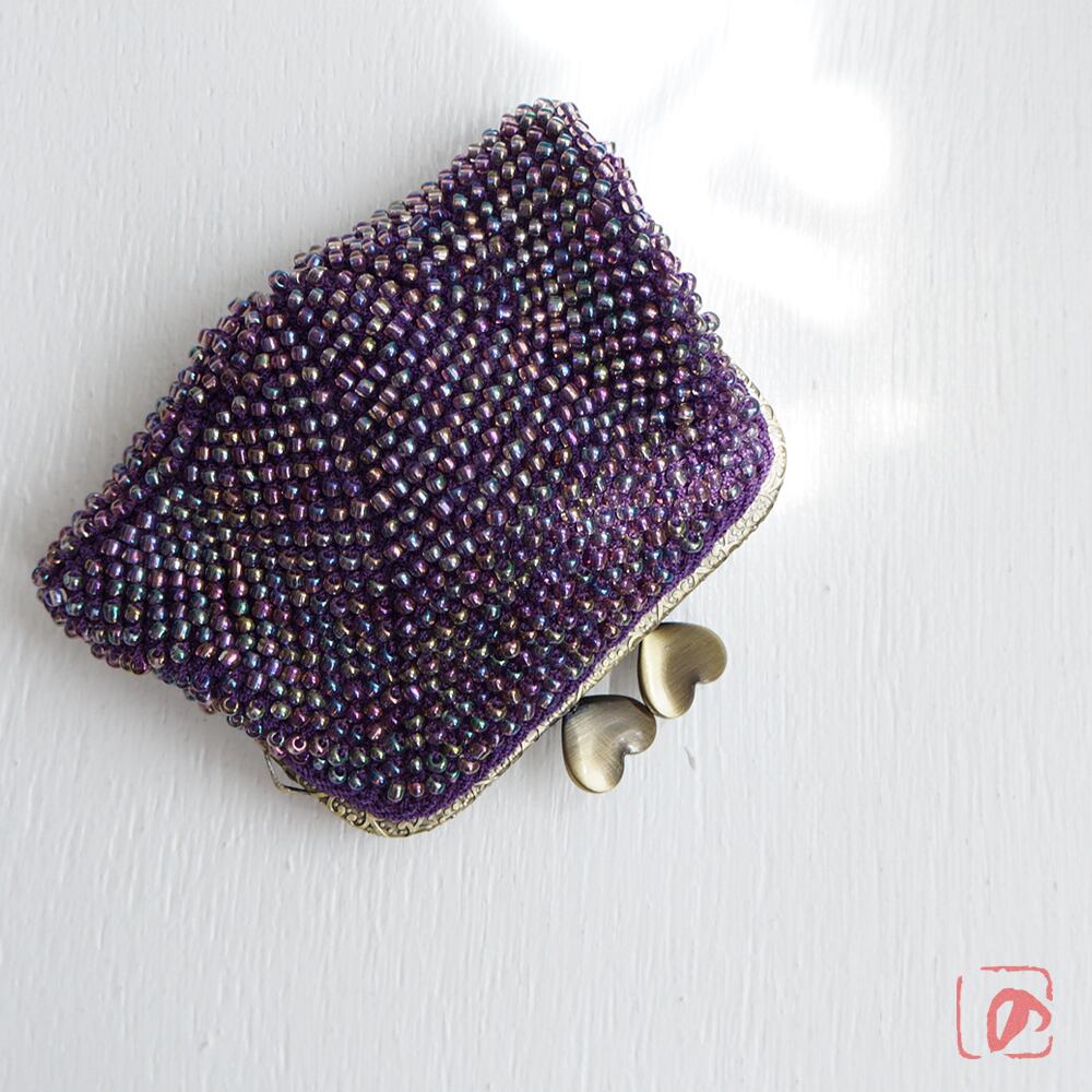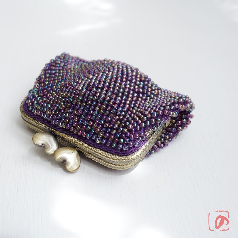 ばあば作♡♡総ガラスビーズのスクエアがま口(葡萄・1502)