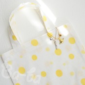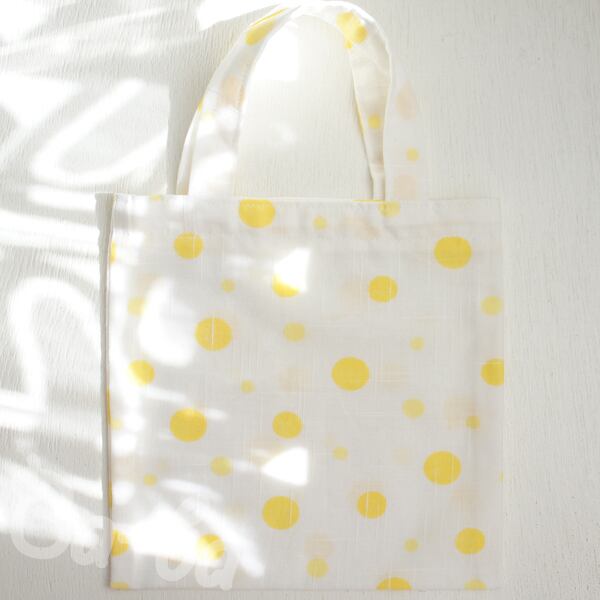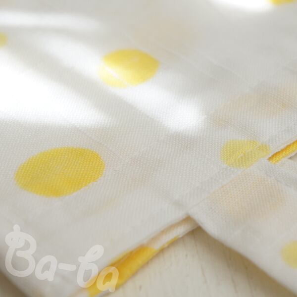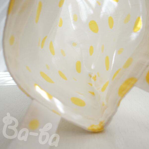 素材 : コットン布 (白地に黄色大小水玉模様)