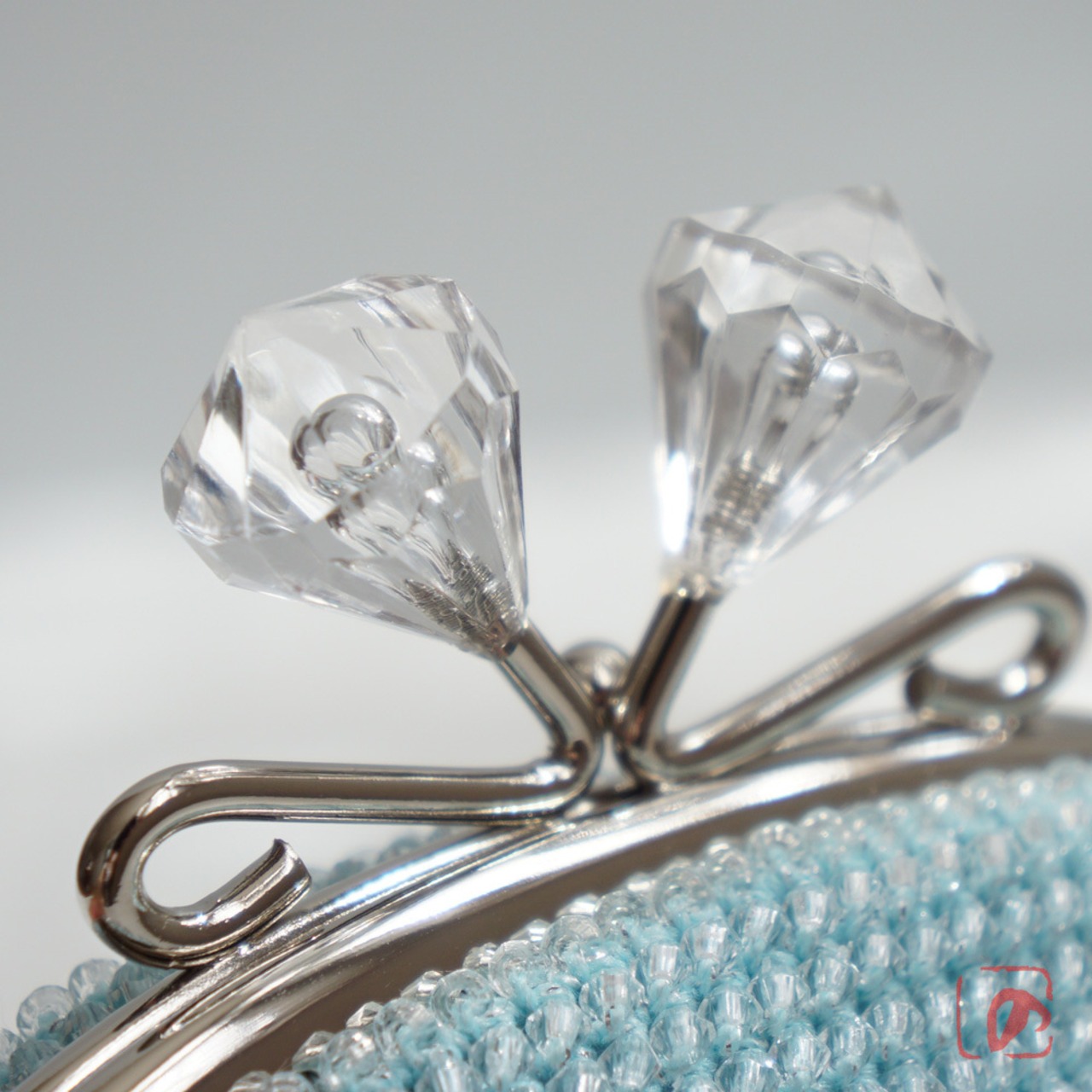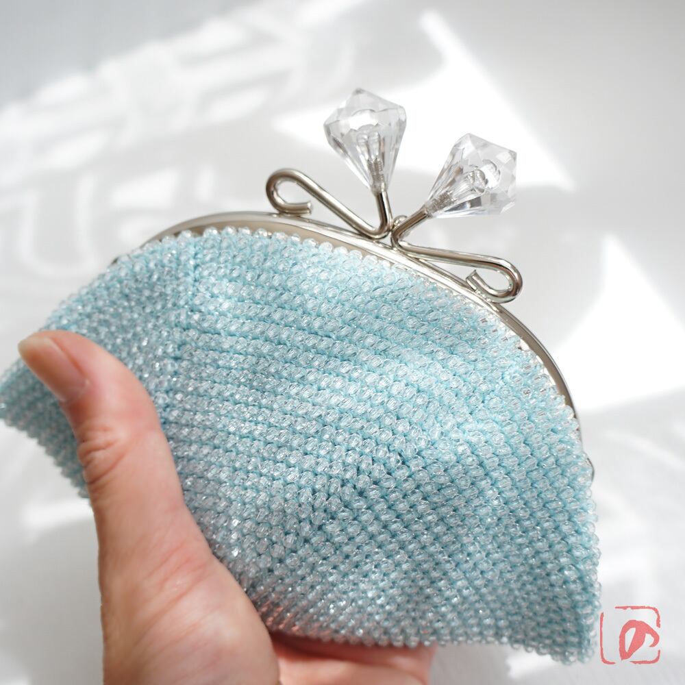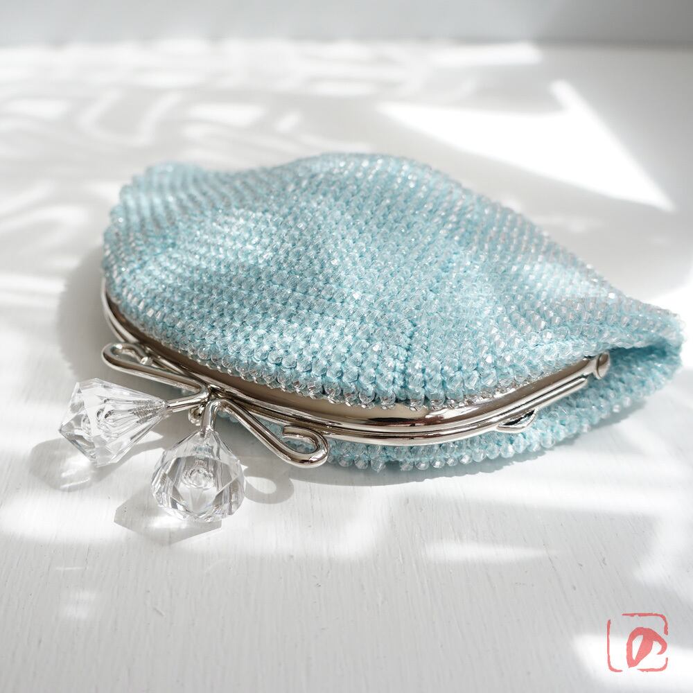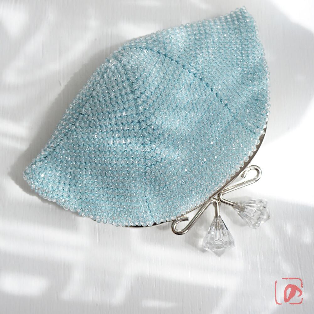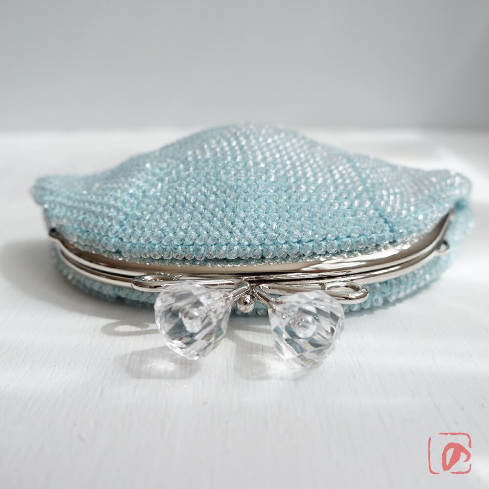 ばあば作☆アクリルビーズのさらに大きめがま口(ice blue・1482)