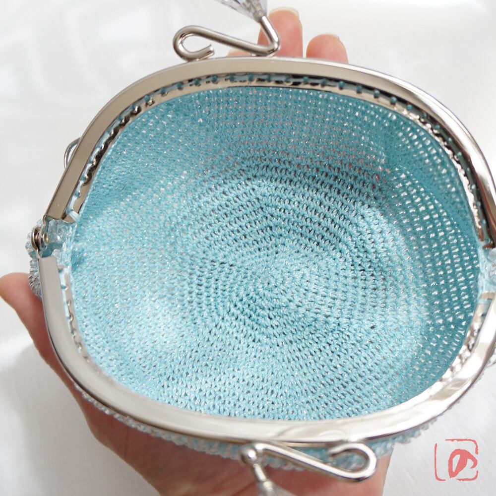 糸 : 混紡サマーヤーン(銀ラメ入り水色)