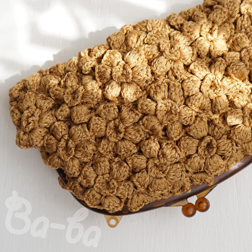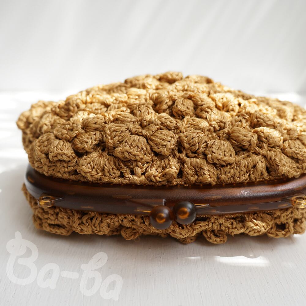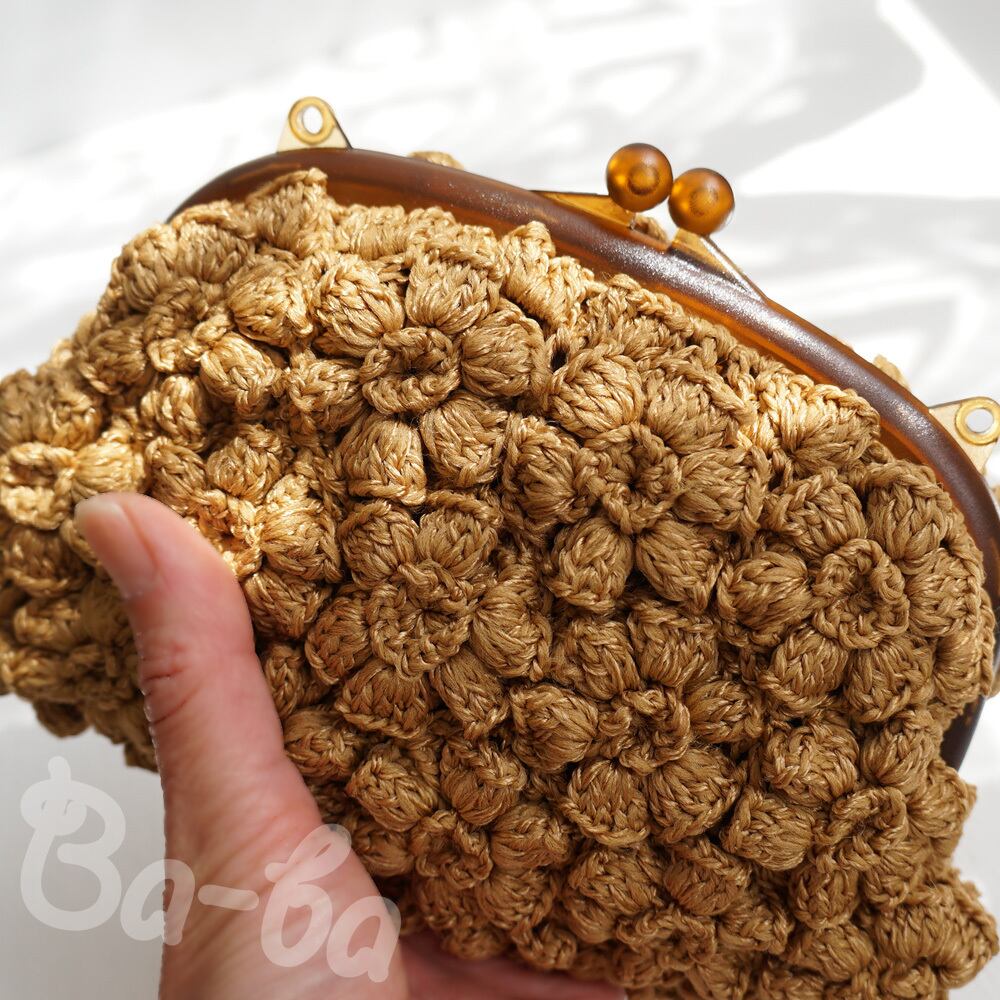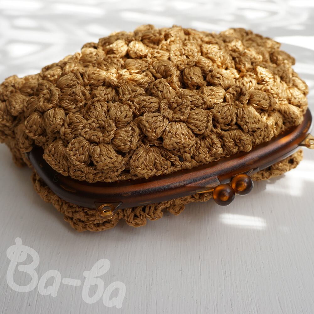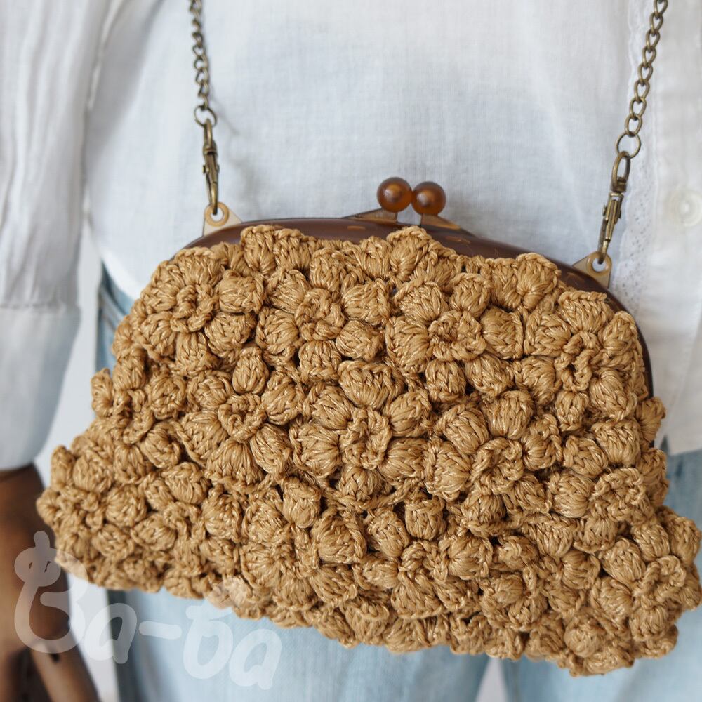 糸とプラ口金をブラウンで統一、シックなプチバッグに仕上げました。