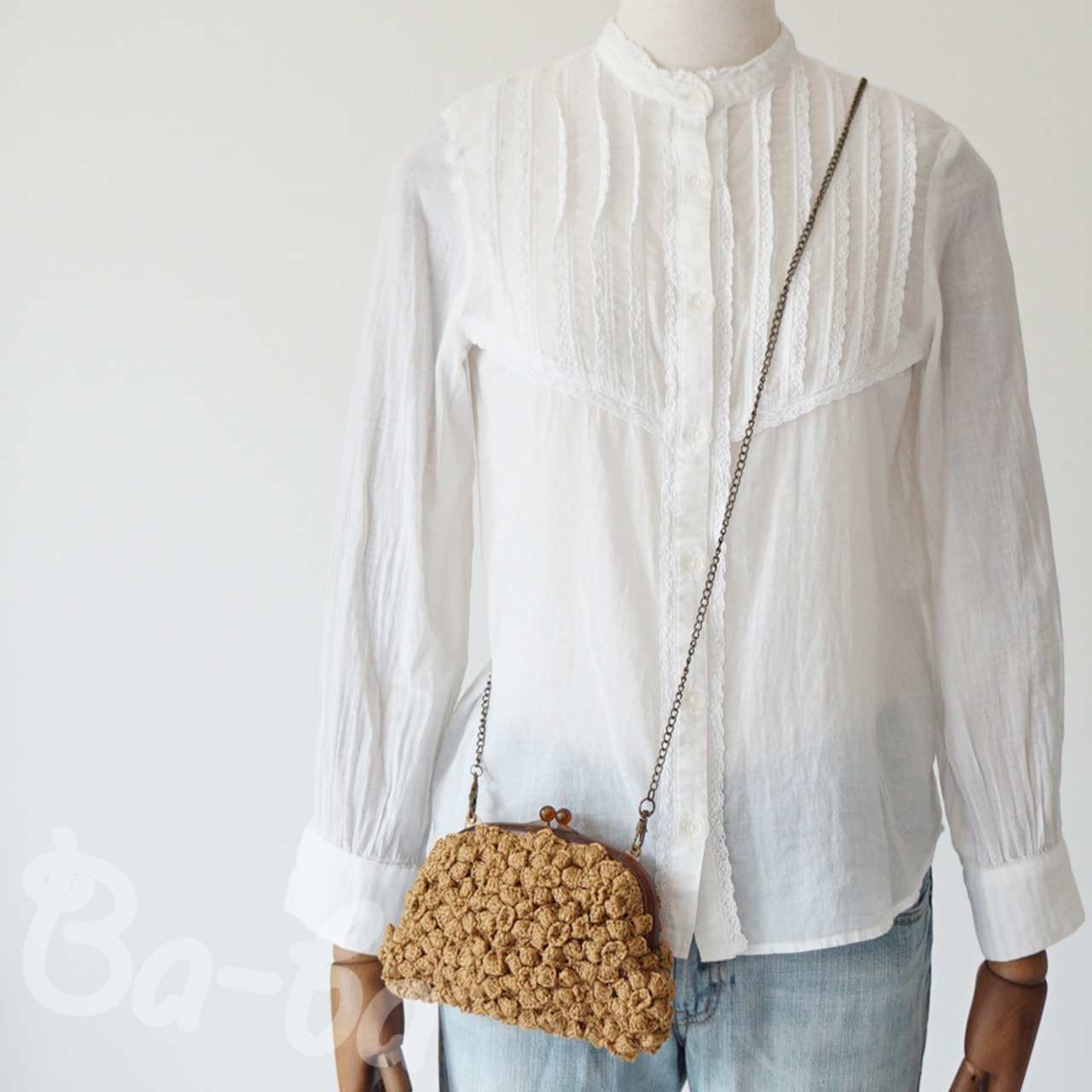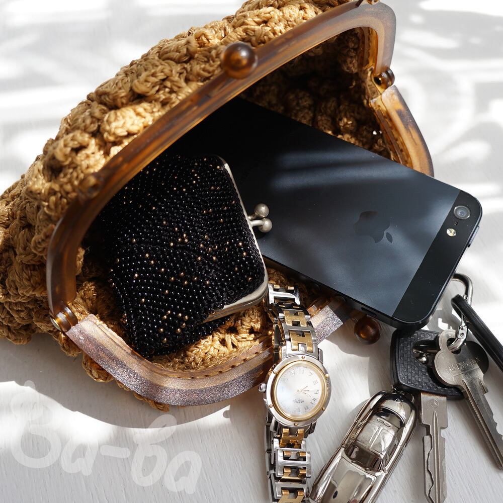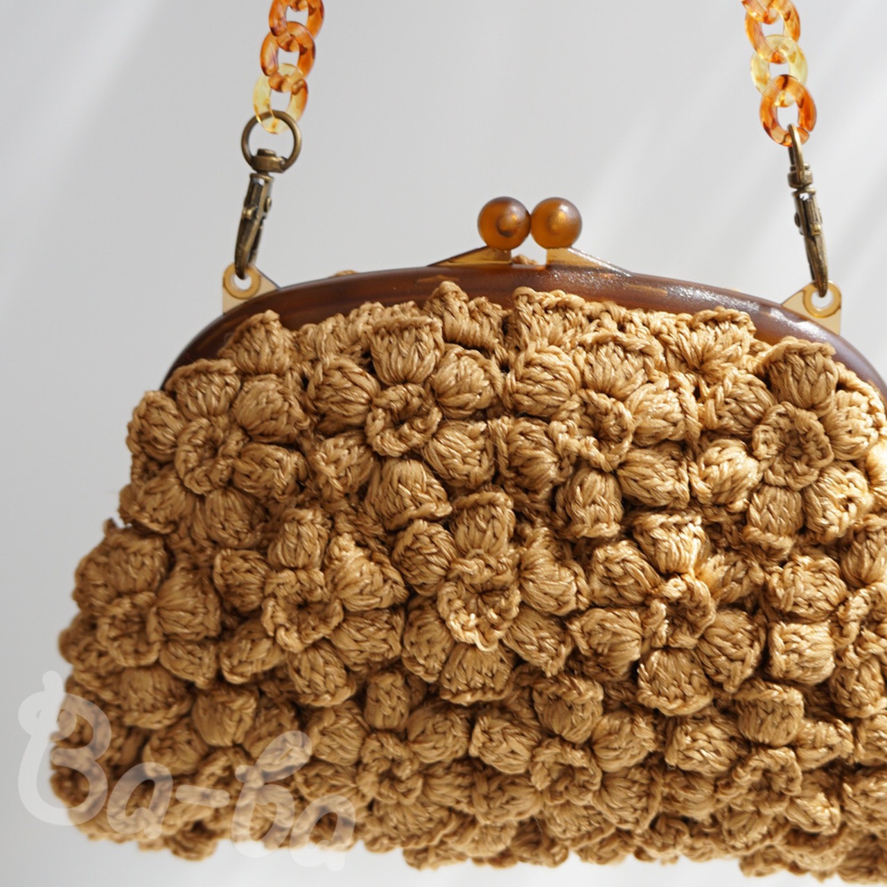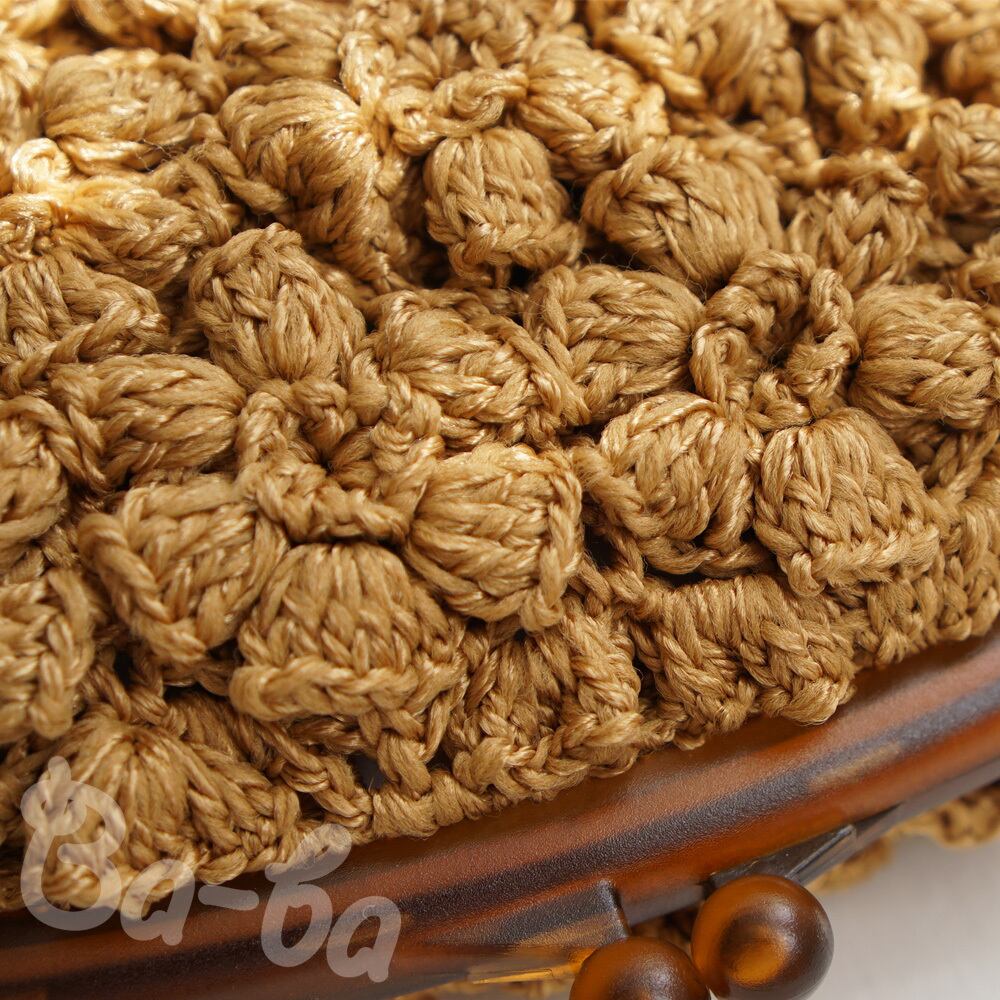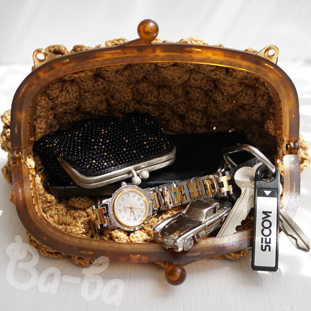 糸とプラ口金をブラウンで統一、シックなプチバッグに仕上げました。
