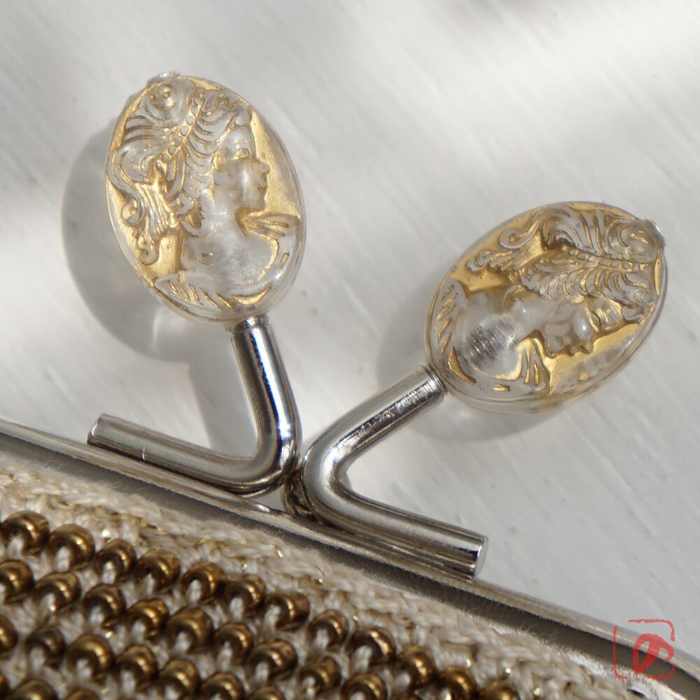 フランスアンティークのようなクリア×ゴールドのカメオ風ビーズをつまみにしました。