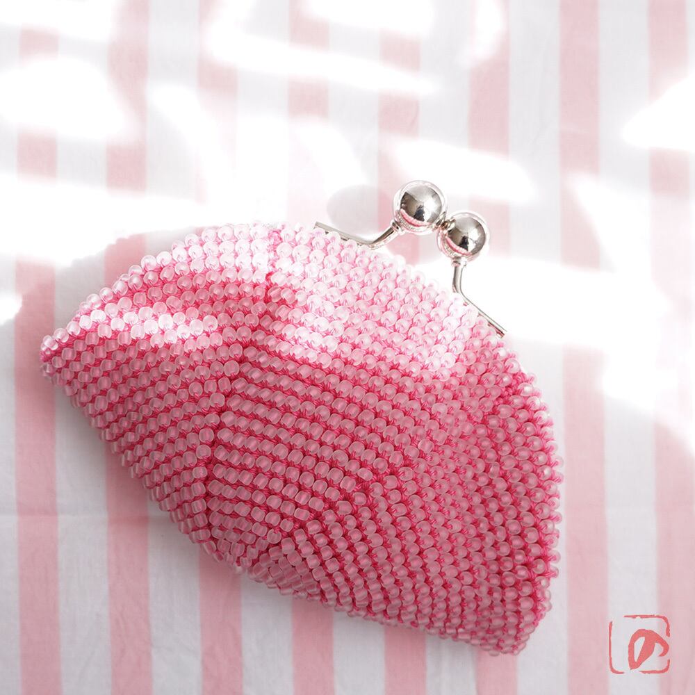 3mmのガラスビーズをひとつぶづつ全面に編み込んだ、上質ながま口です。
