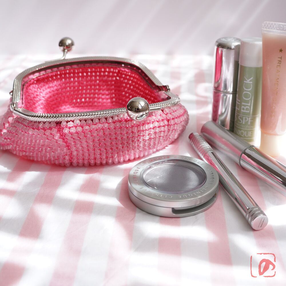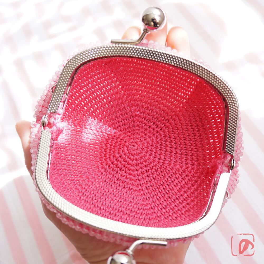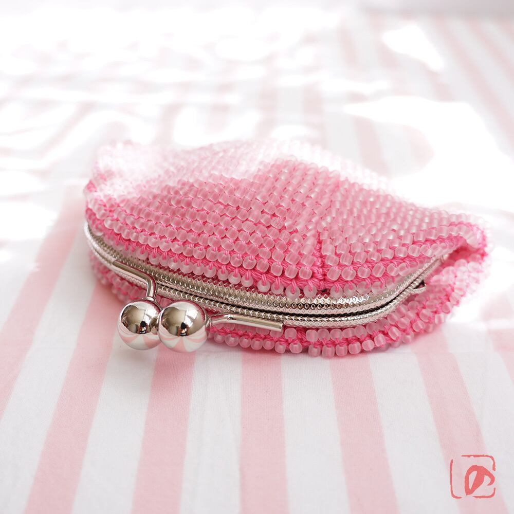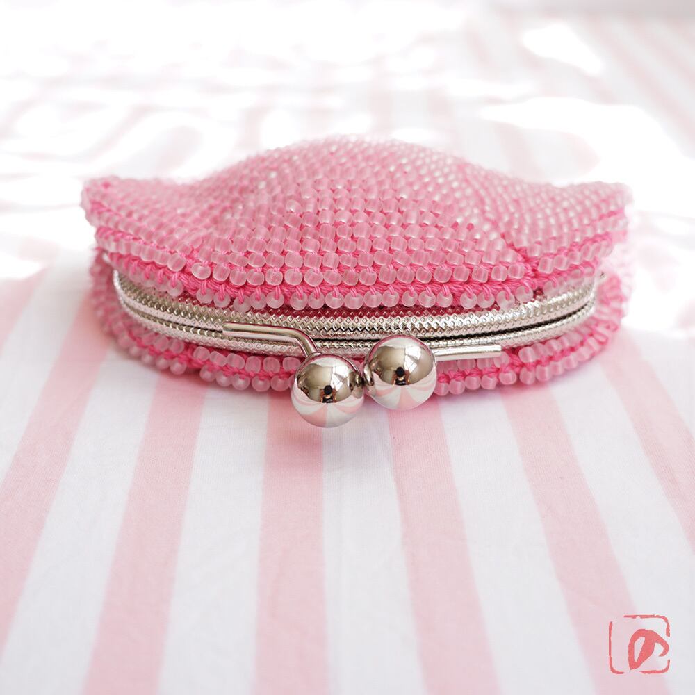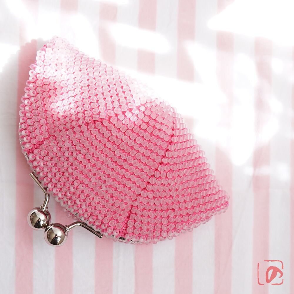 ばあば作♪ガラスビーズの大きめがま口(frost pink・1512)