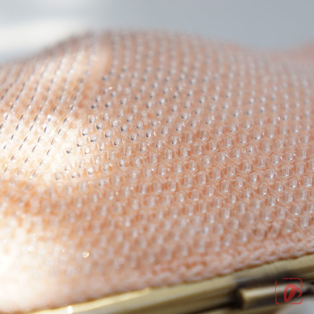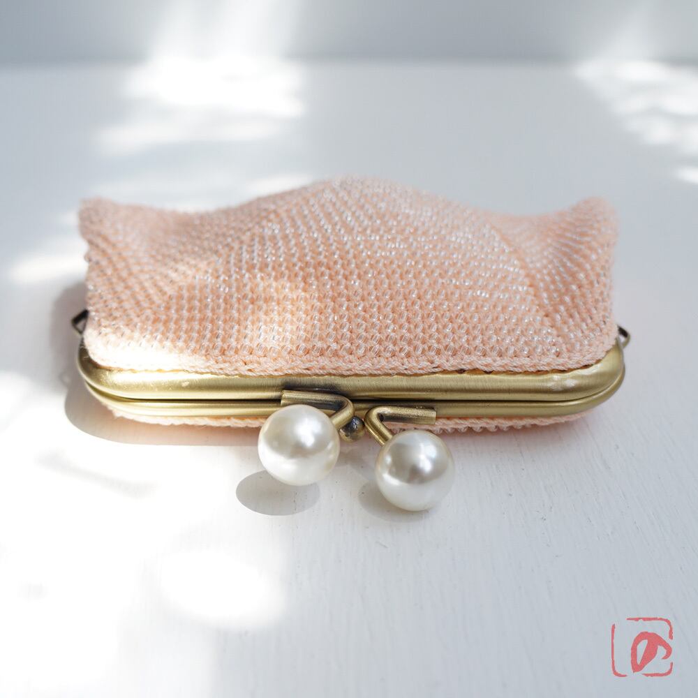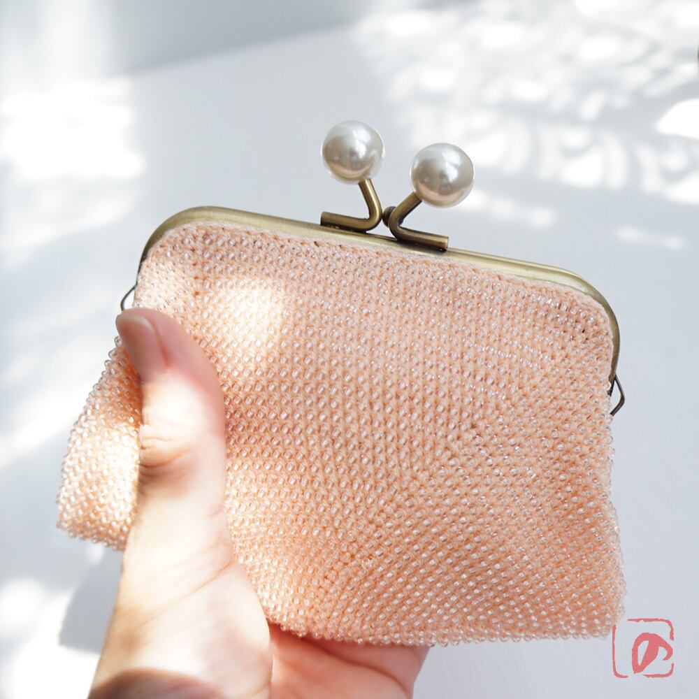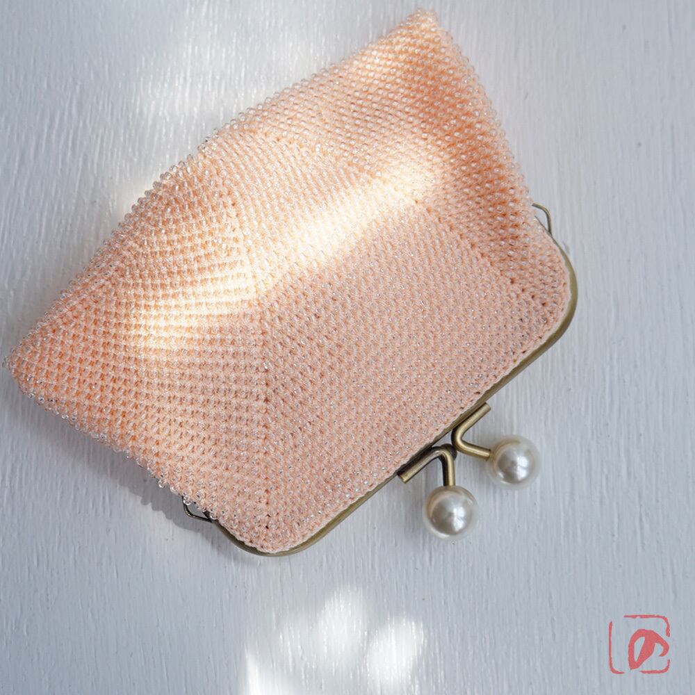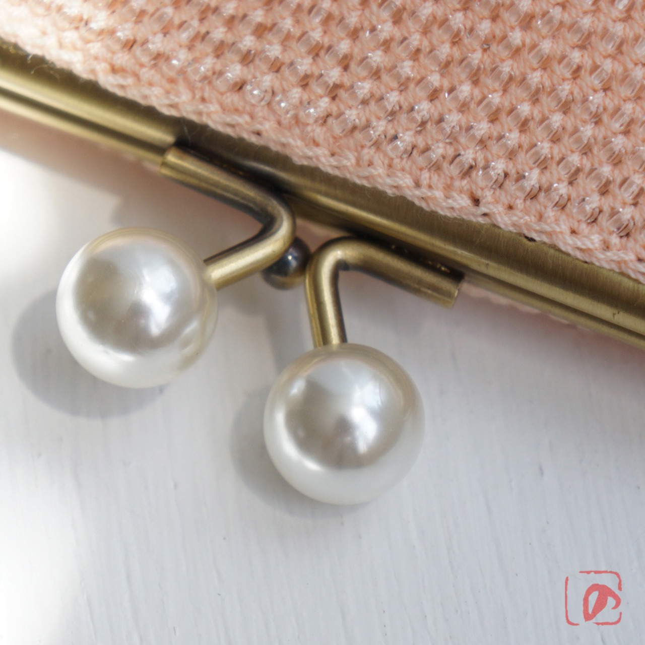 クリアビーズを使用、ピーチピンクの糸の色が透けるように仕上げました。