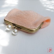 ばあば作♪シードビーズの大きめスクエアがま口(peach・1525)