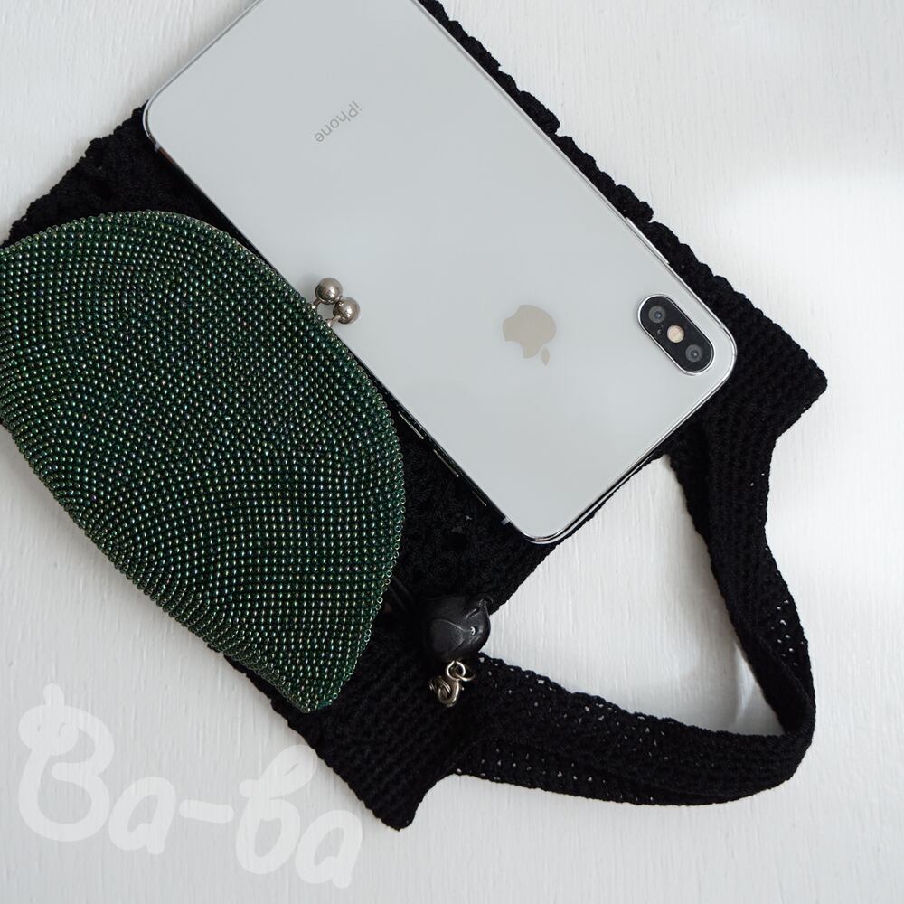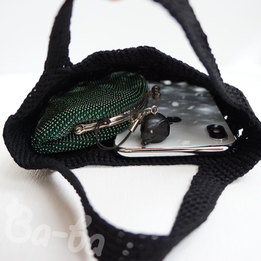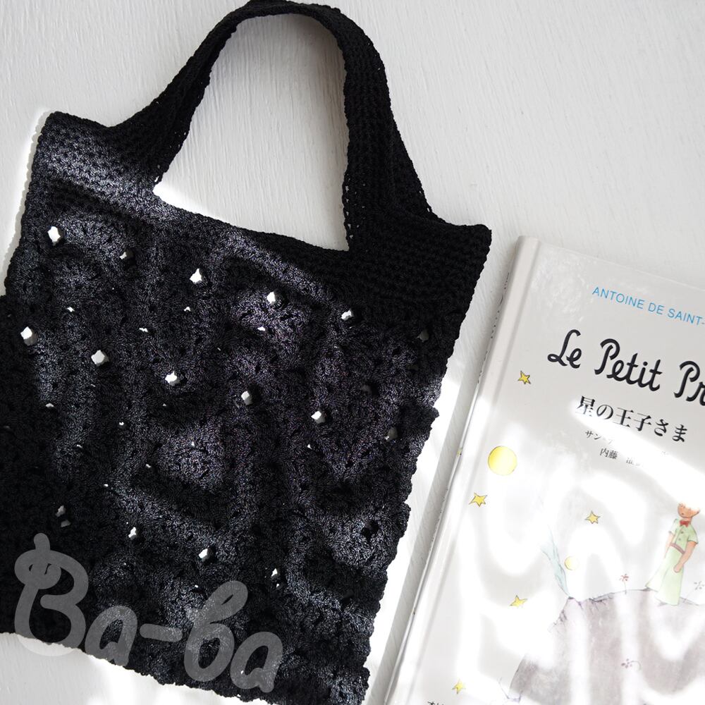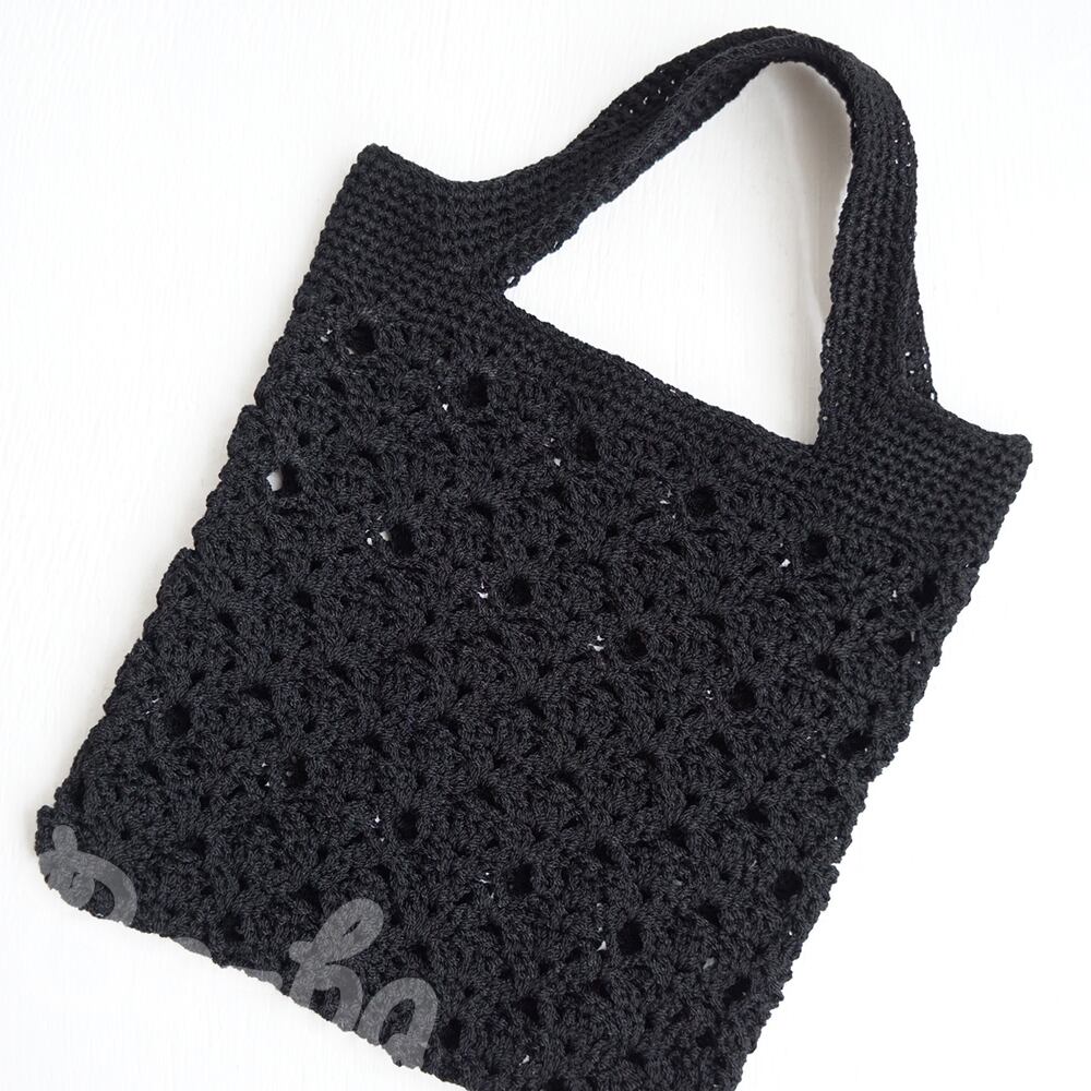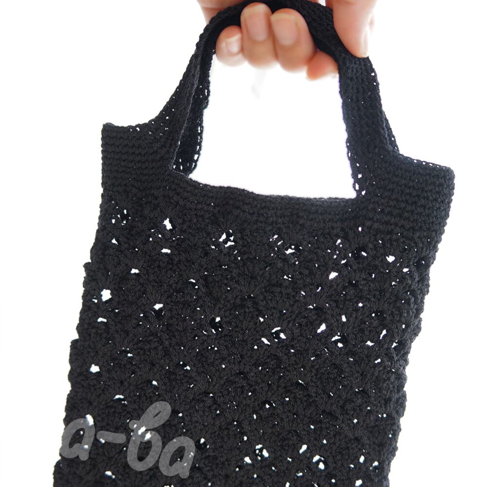 ばあば作♪透かし編みの、すけすけ手さげバッグ(schwarz・MB18)