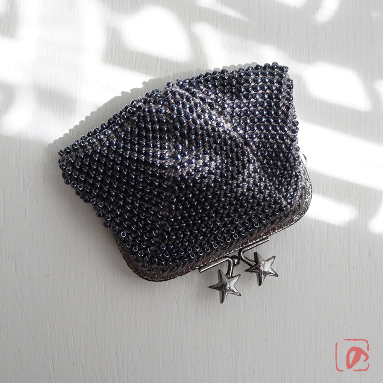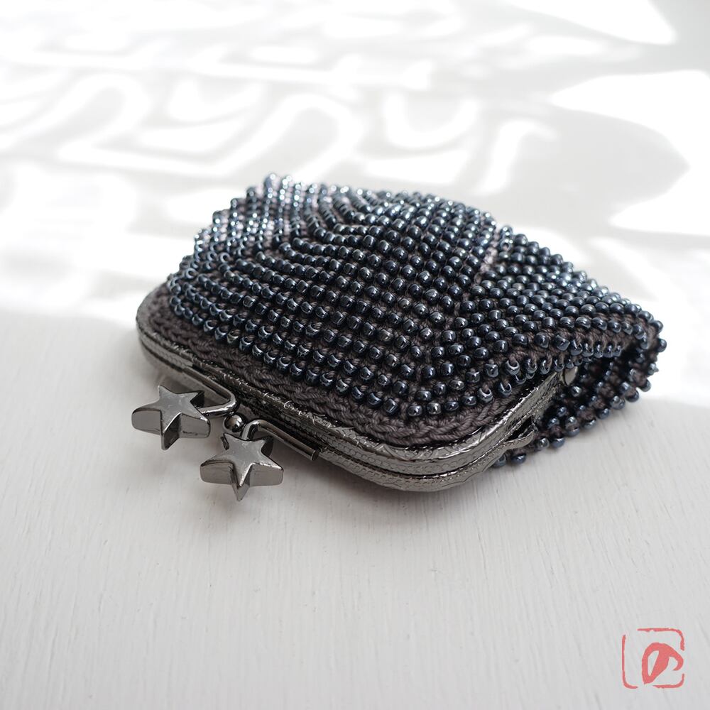 ばあば作☆総ガラスビーズのスクエアがま口(nacht・1517)