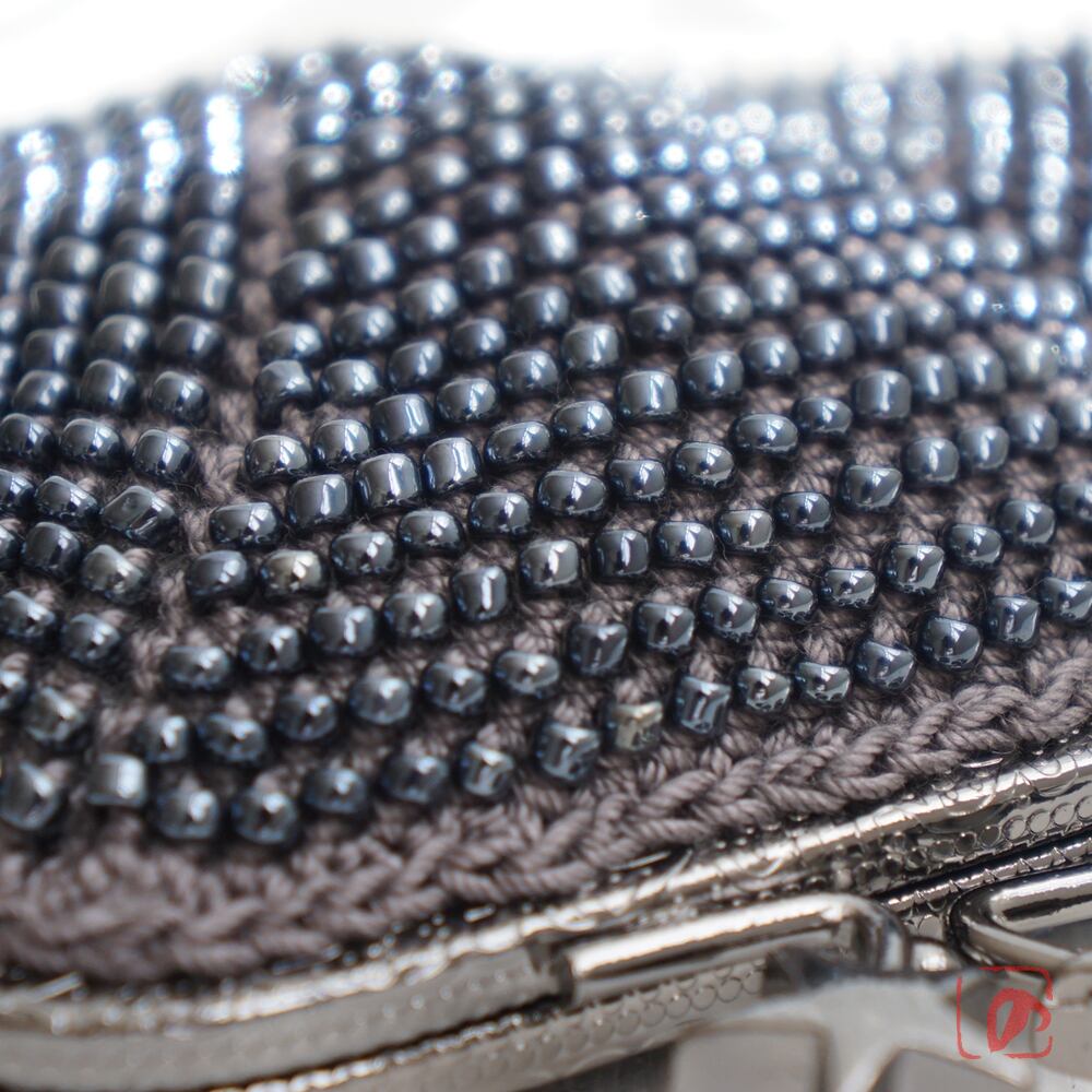 ビーズ、口金、糸を同系色でまとめ、シックな作品に仕上げました。