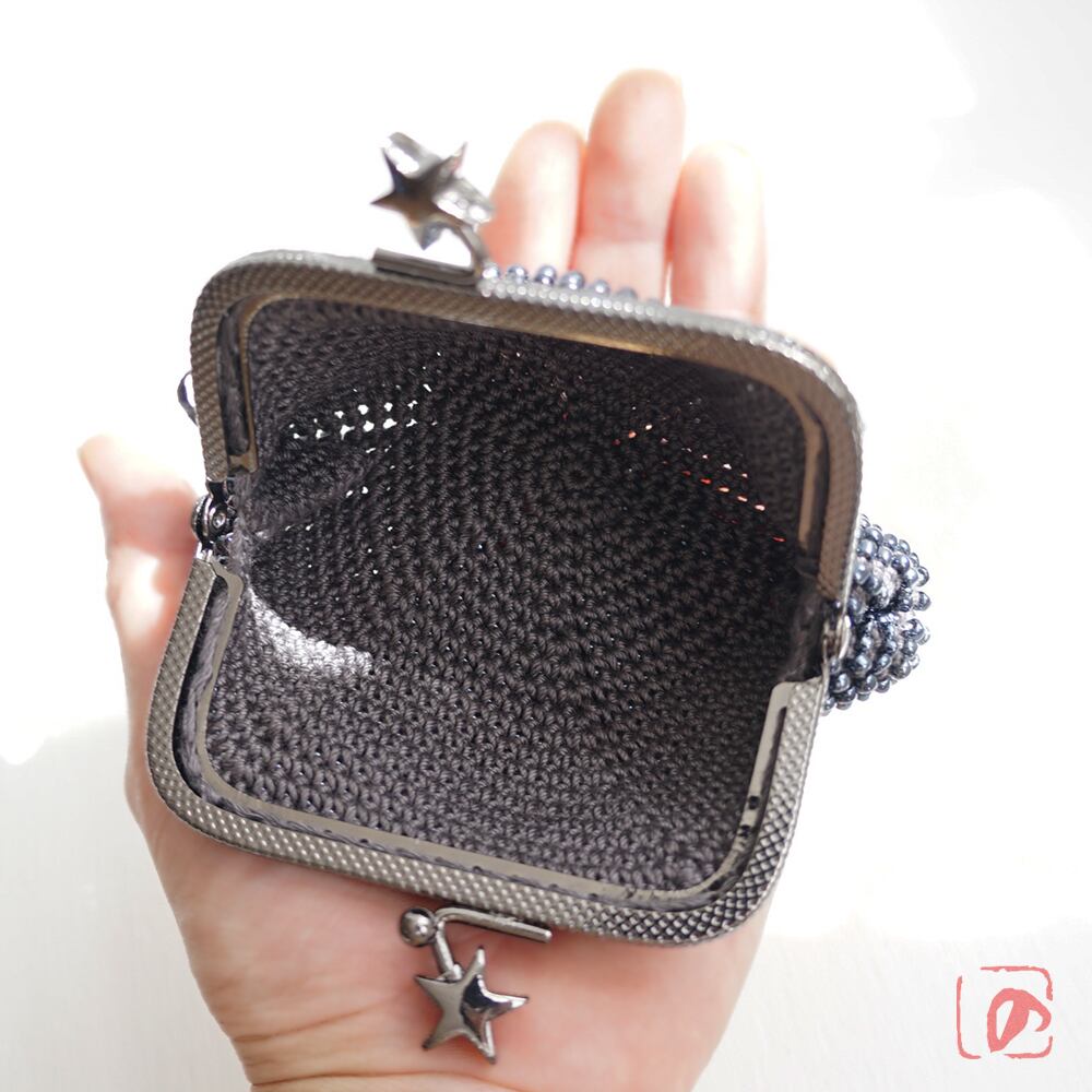 口金 : メタルブラック、星のつまみ、8.5cm、角型、片カン