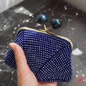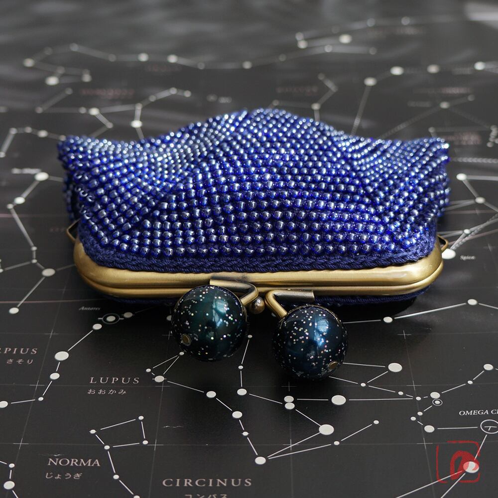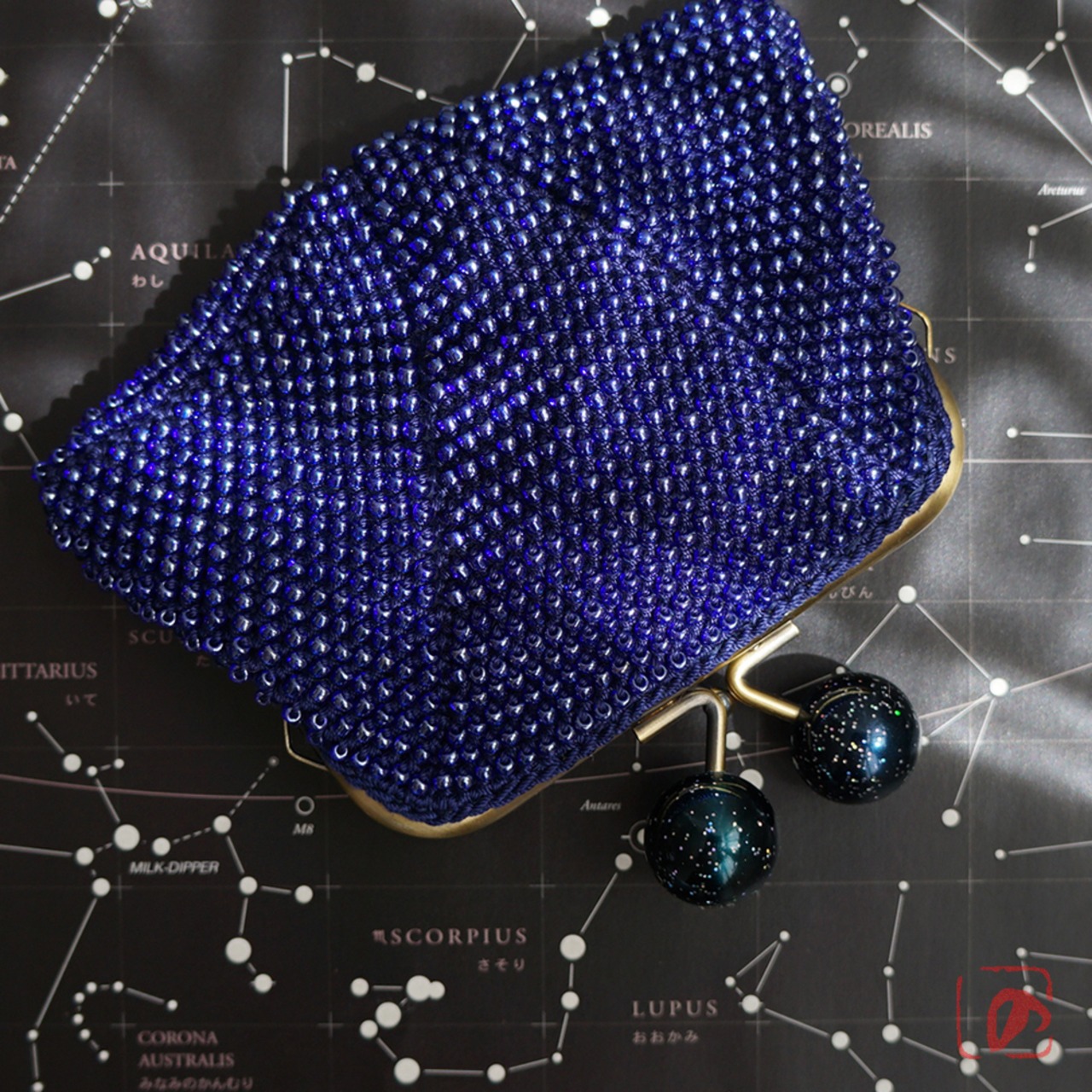 ばあば作、大きめ・総ガラスビーズのスクエアがま口(callisto・1527)