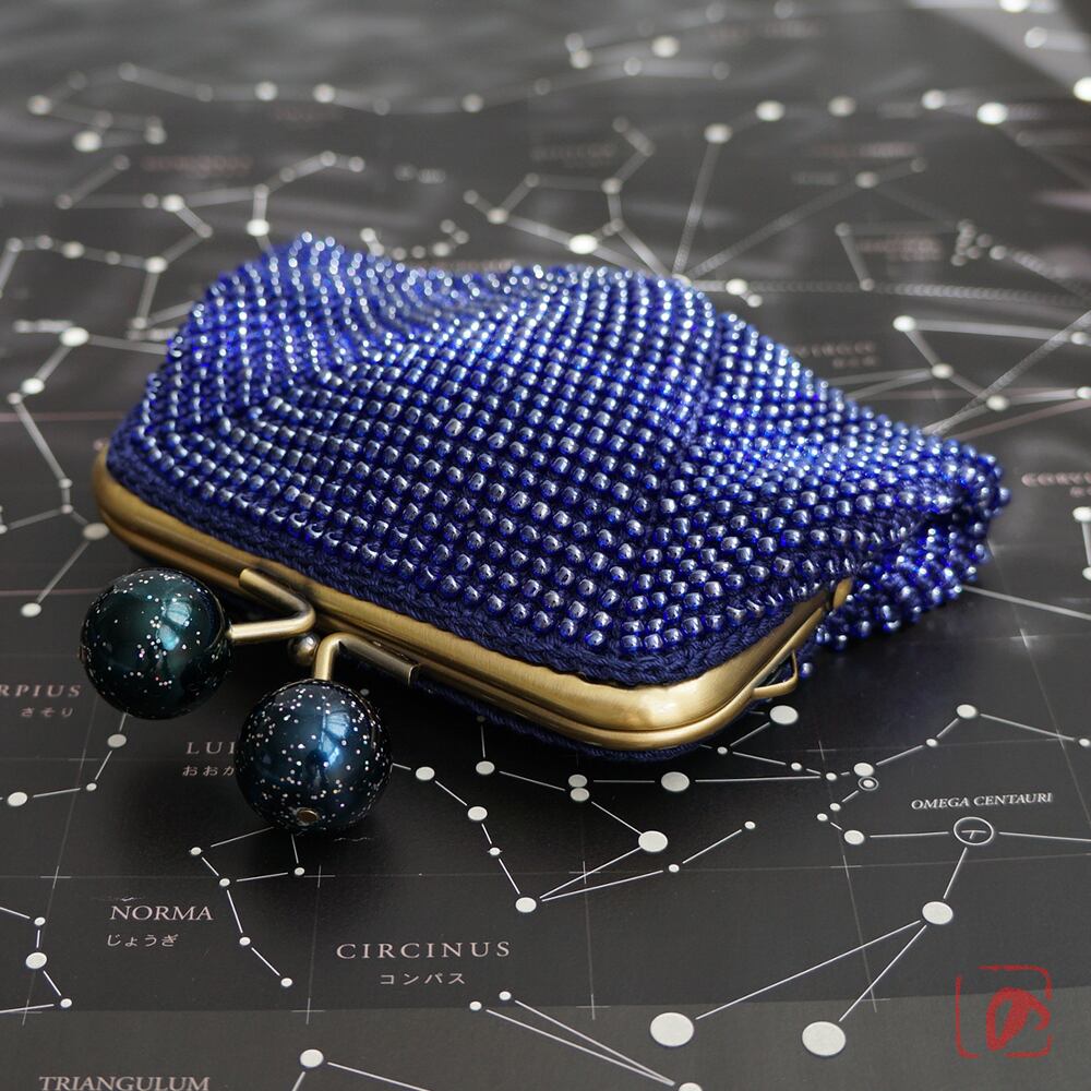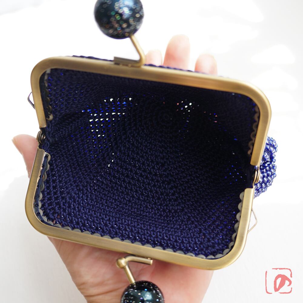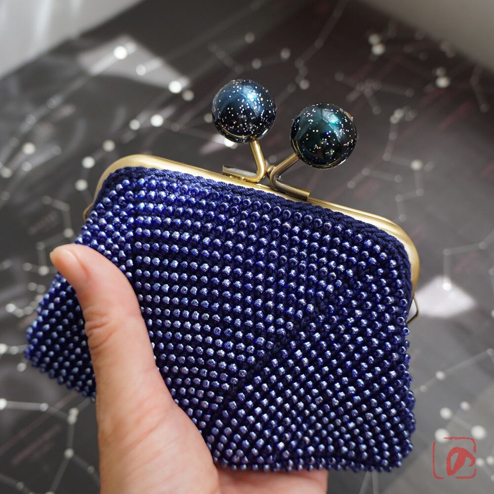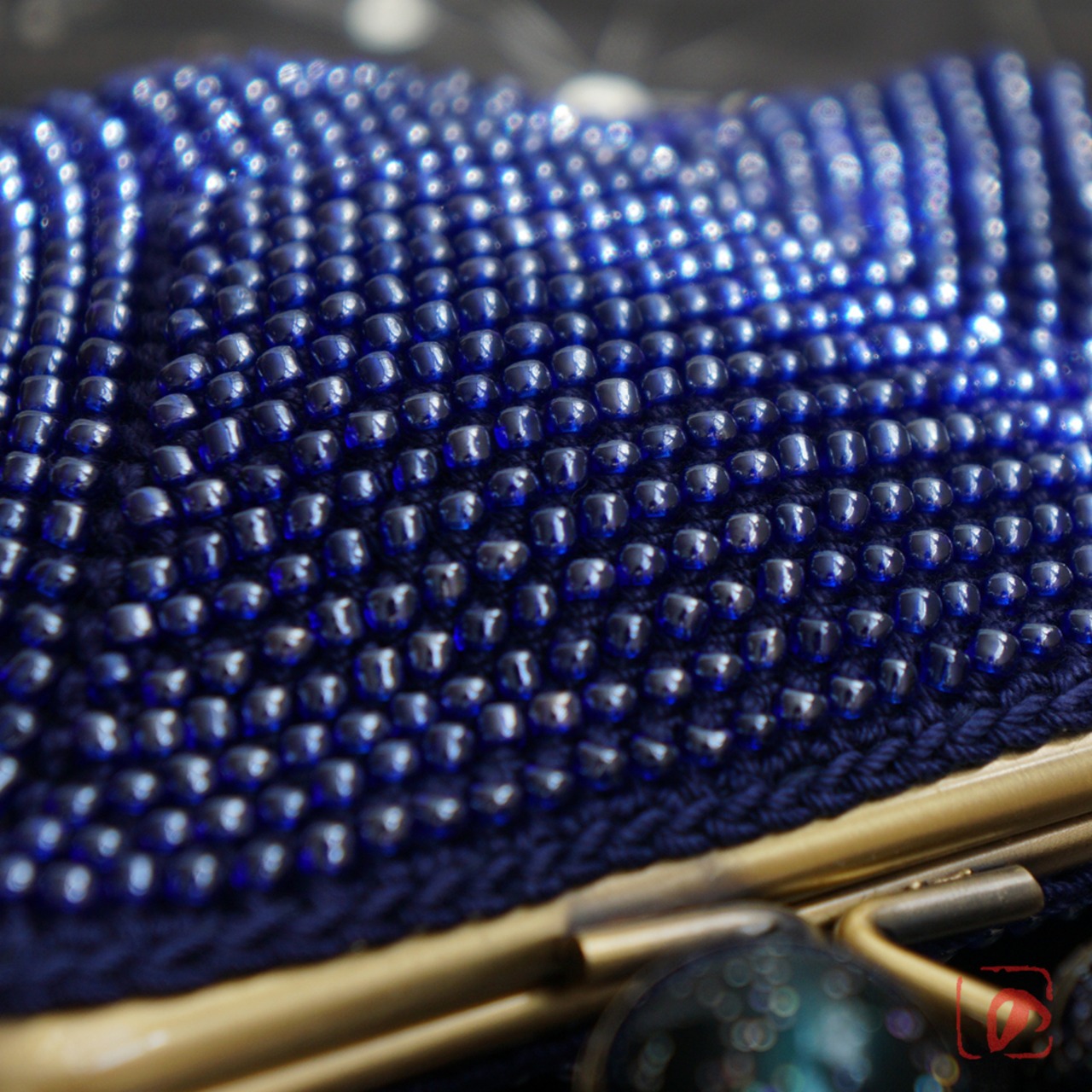 3mmのガラスビーズをひとつぶづつ、全面に編み込みました。
