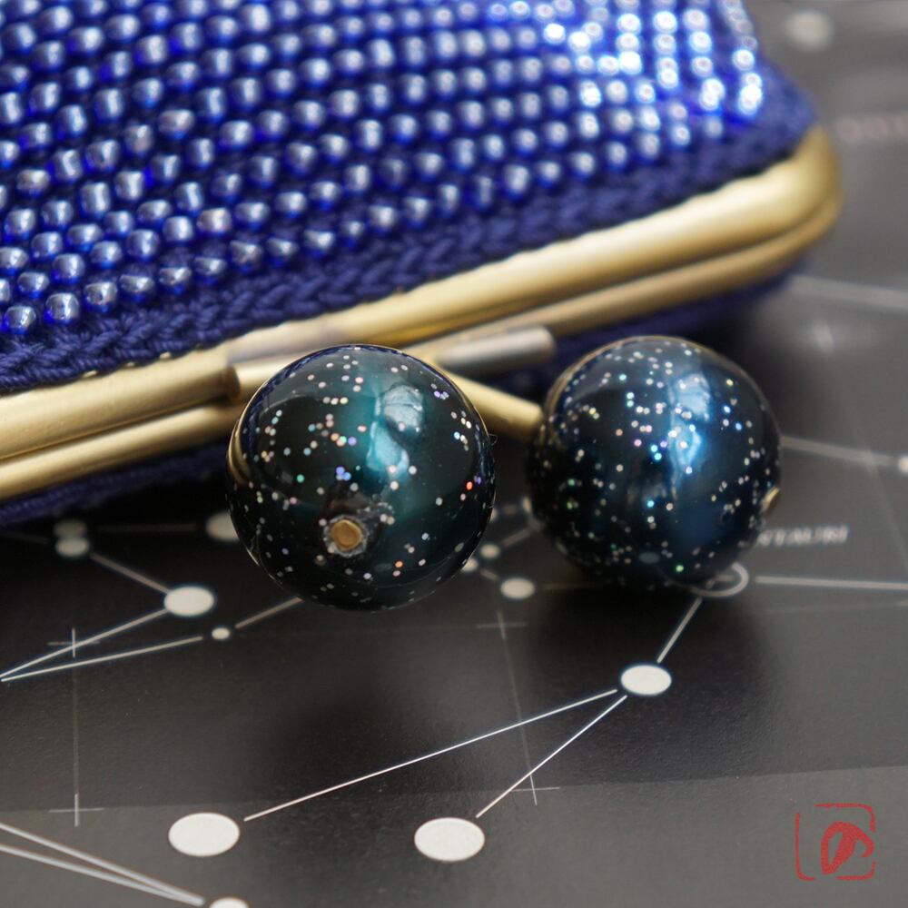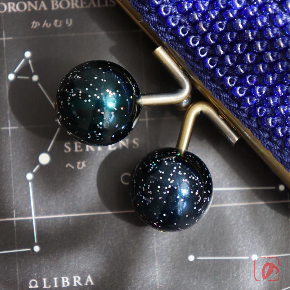 夜空に瞬く星屑、キラキラビーズをつまみに使用しました。