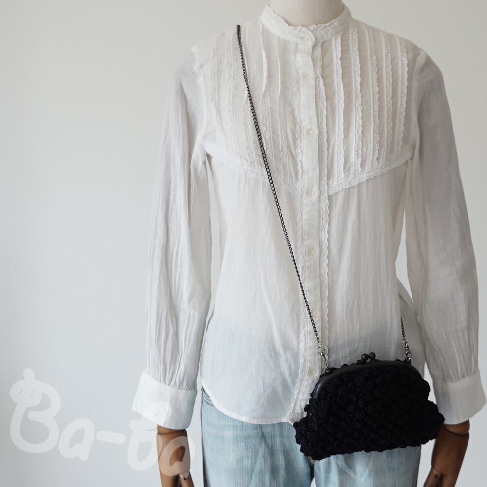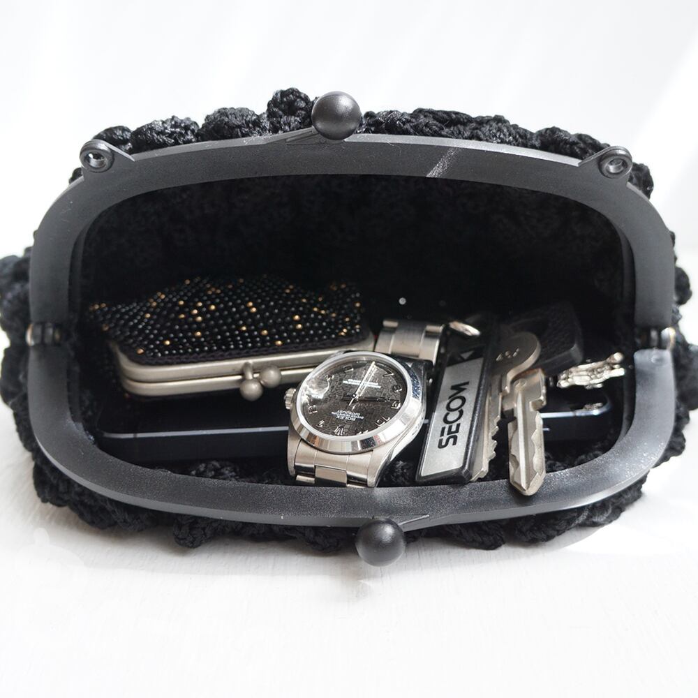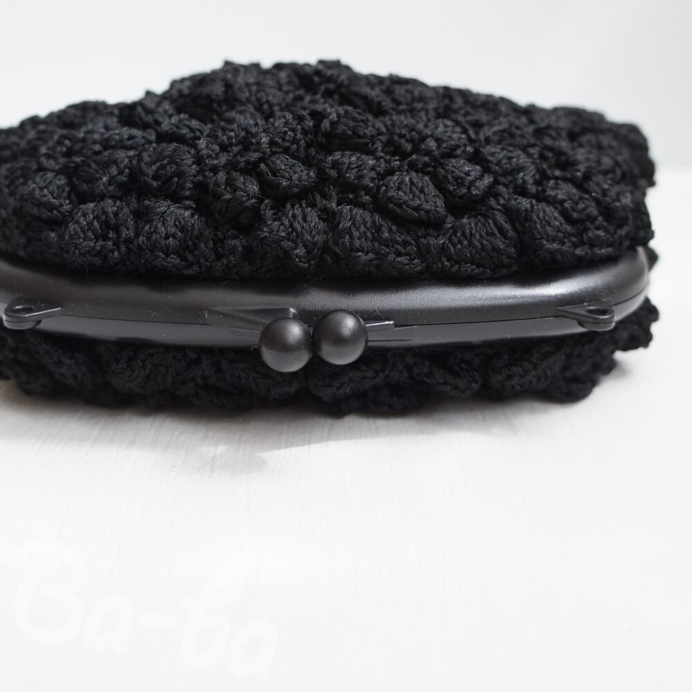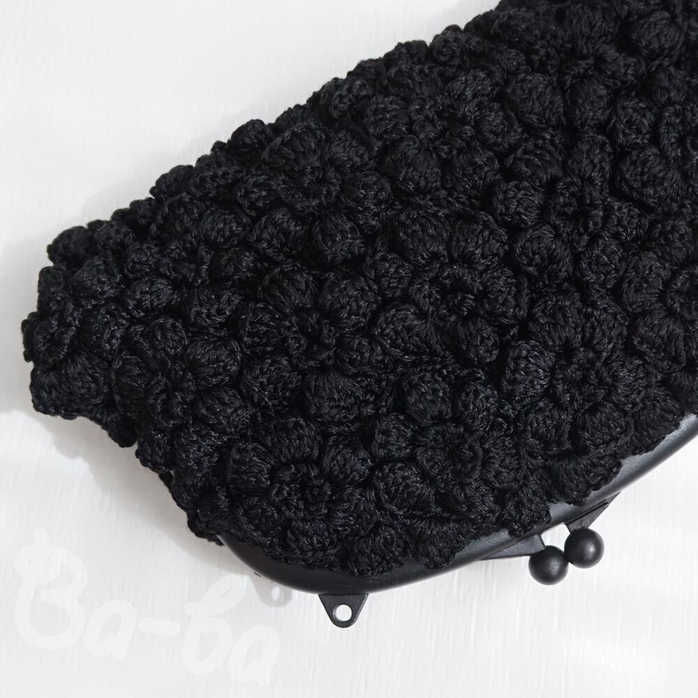 糸とプラ口金を黒で統一、大人っぽいプチバッグに仕上げました。