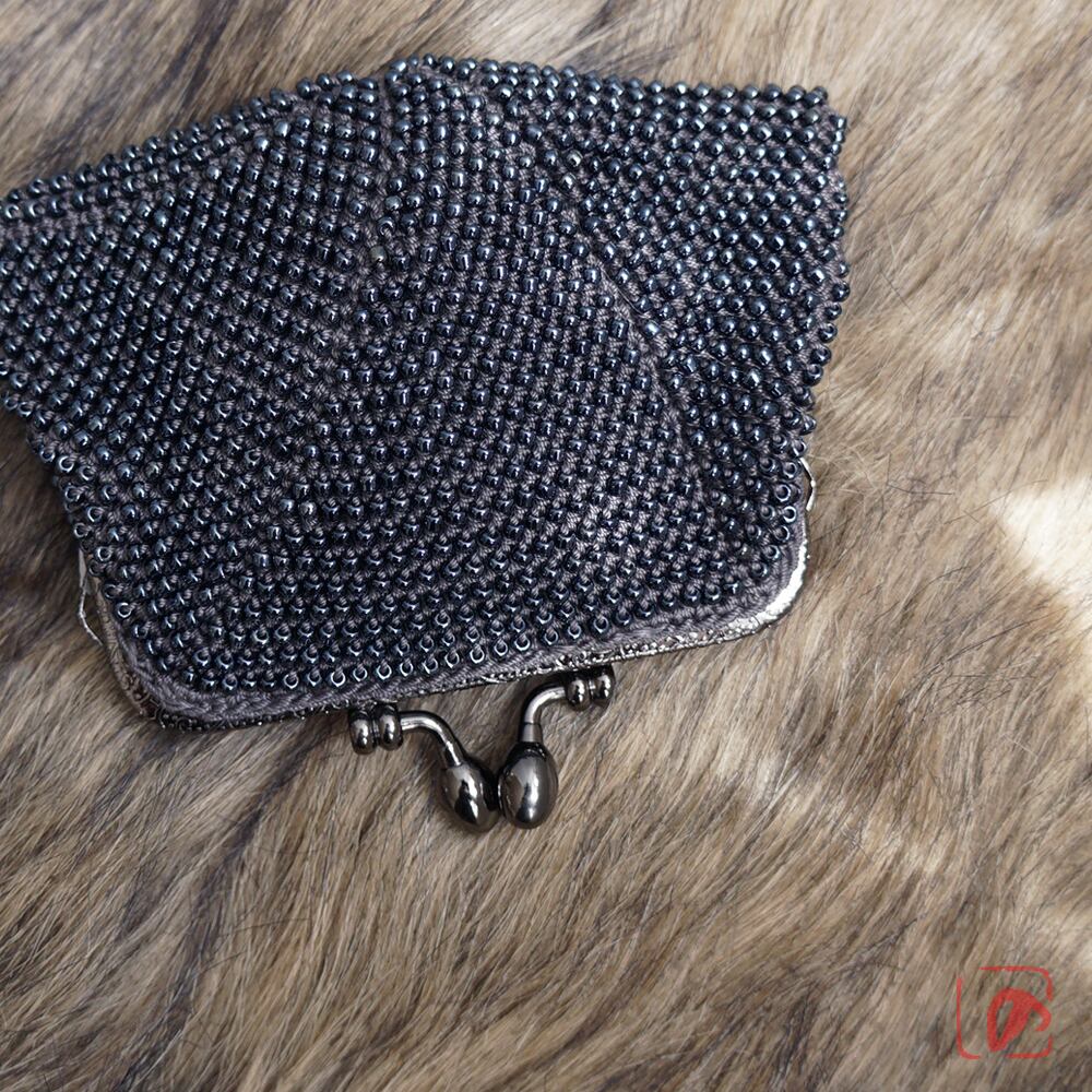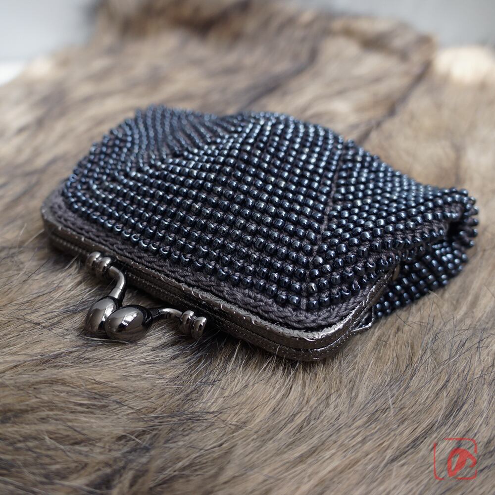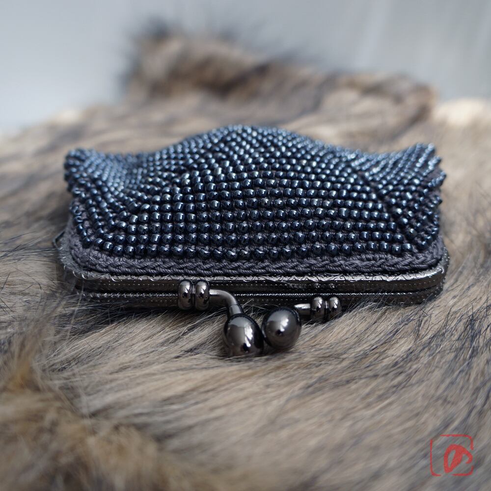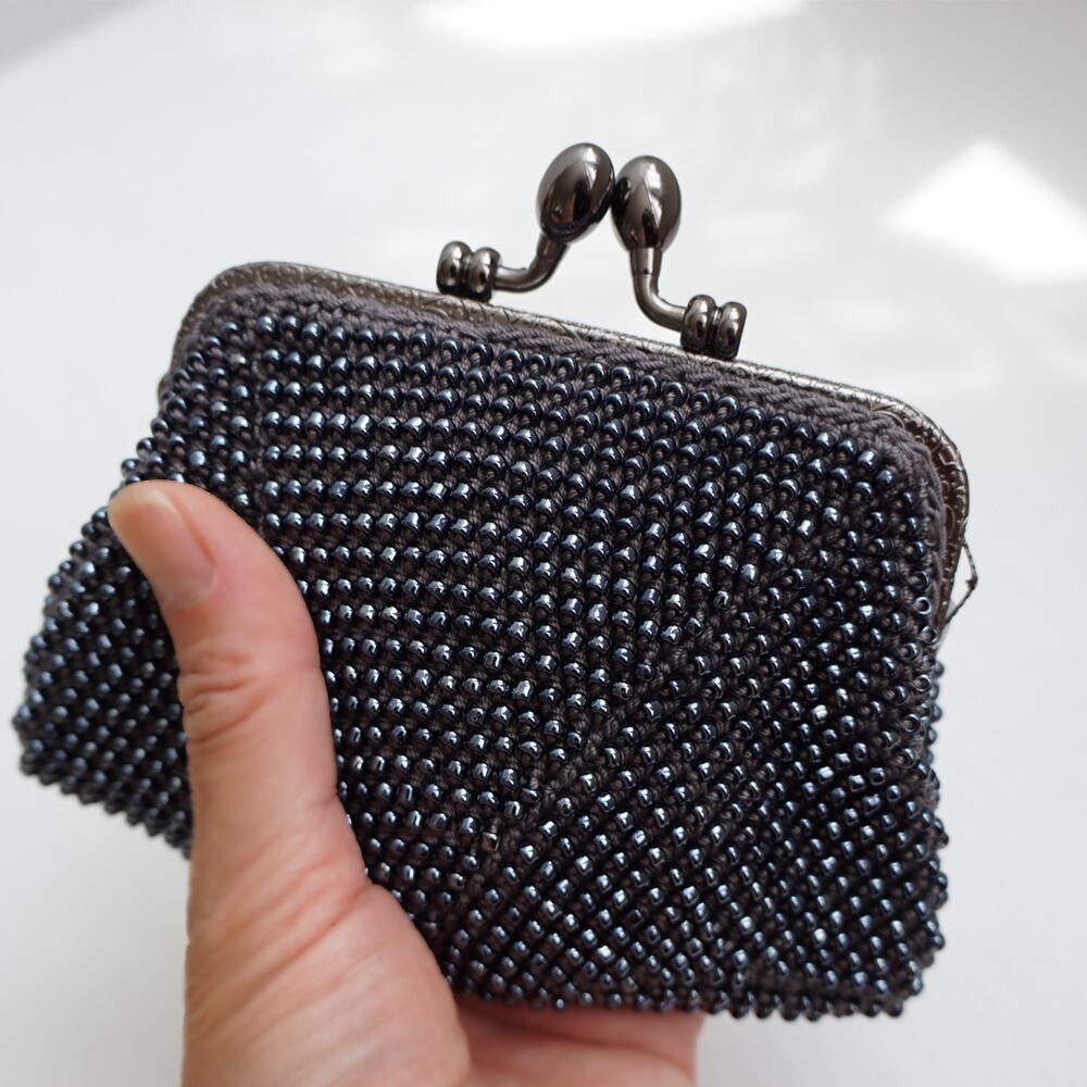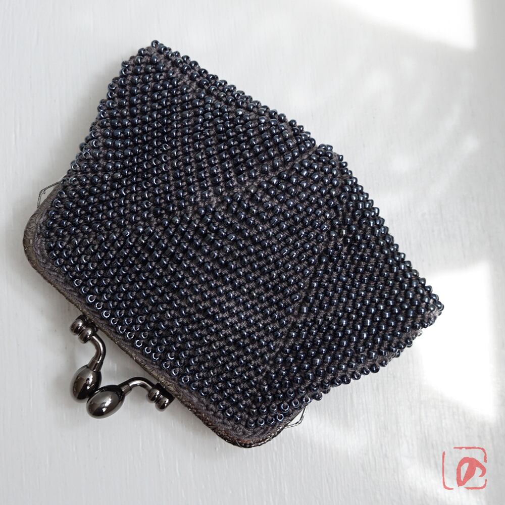 ばあば作☆大きめ・総ガラスビーズのスクエアがま口(metall・1501)