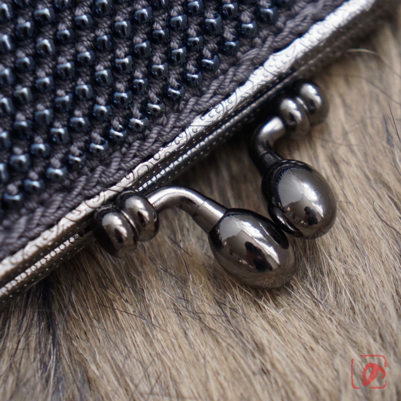 口金 : メタルブラック、どんぐりつまみ、10.5cm、角型、両カン