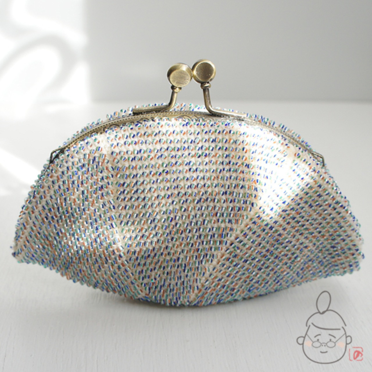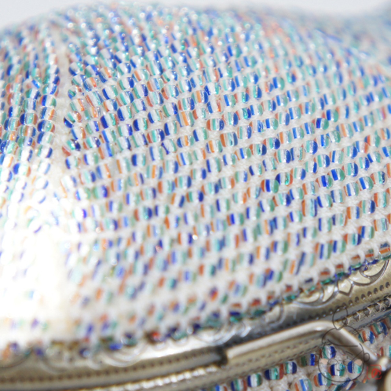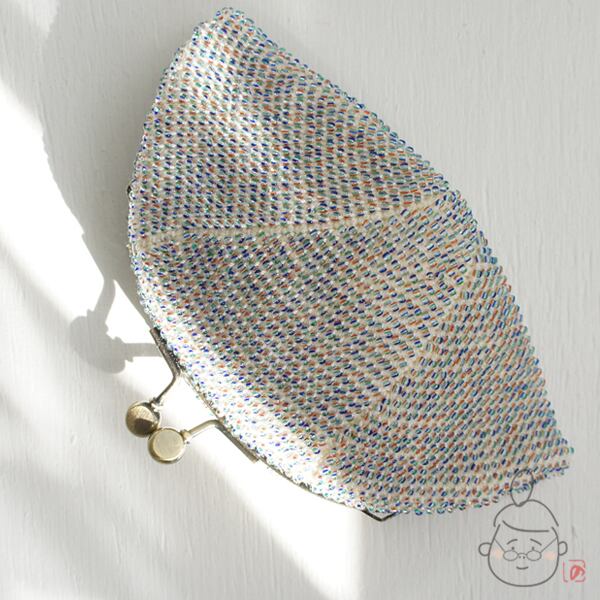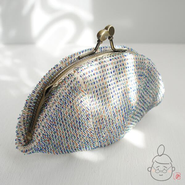2mmのミックスカラーシードビーズをひとつぶづつ全面に編み込んだ、上質ながま口です。