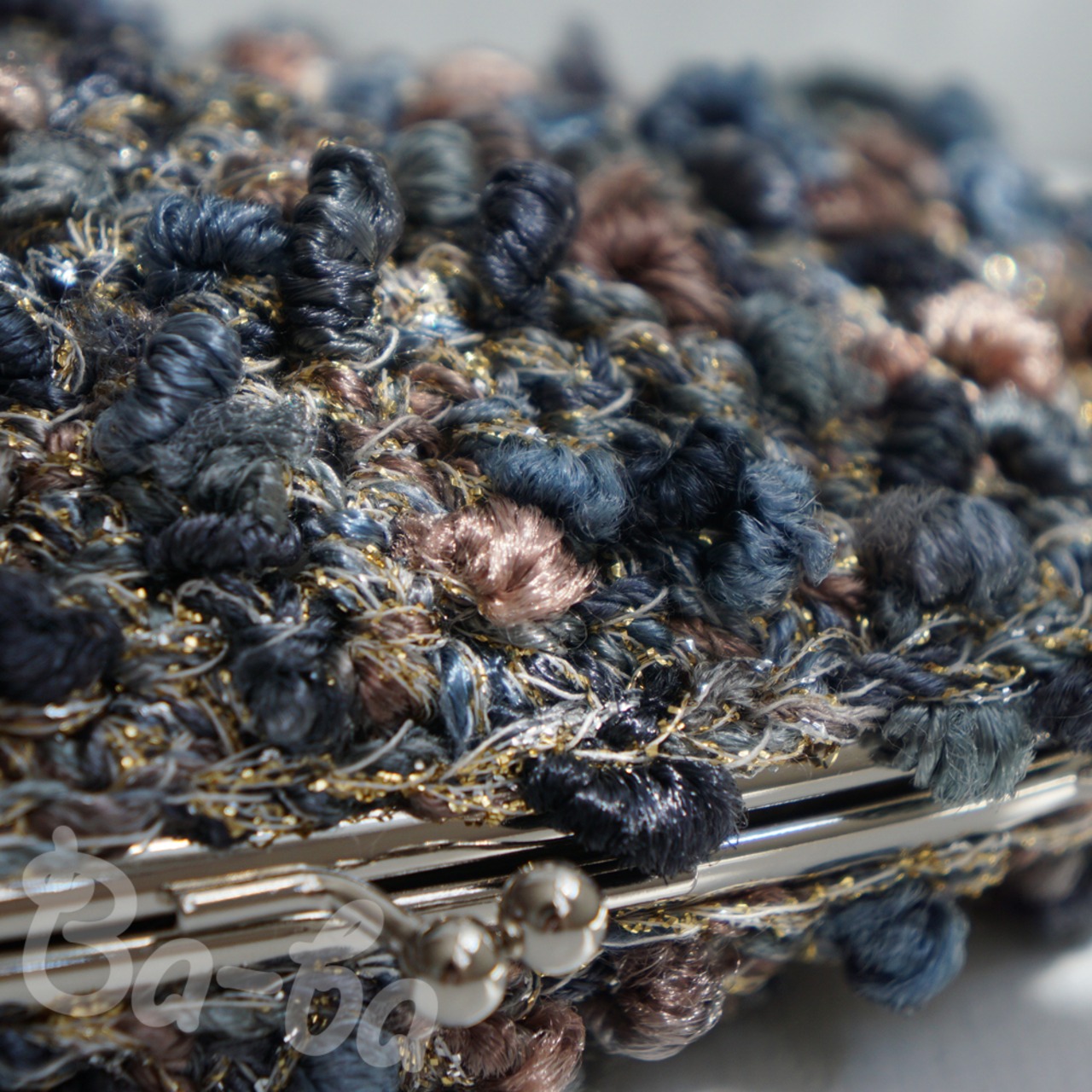 糸 : フランス製混紡糸(茶、青系ネップ及び金銀ラメ)