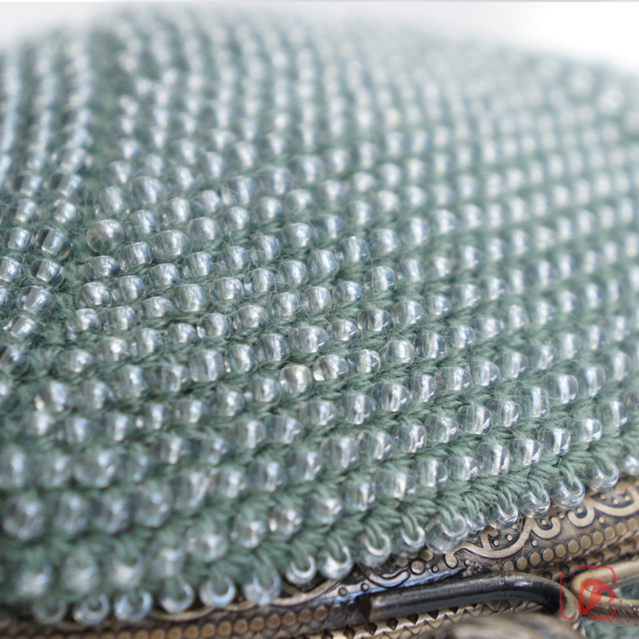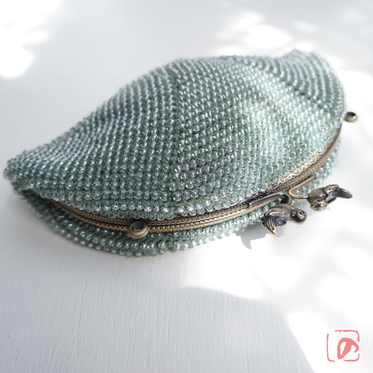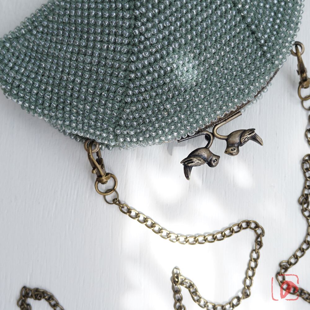 なめらかな手触りの編み地には、小鳥つまみの口金を組み合わせてアクセントにしました。