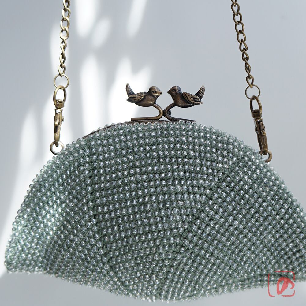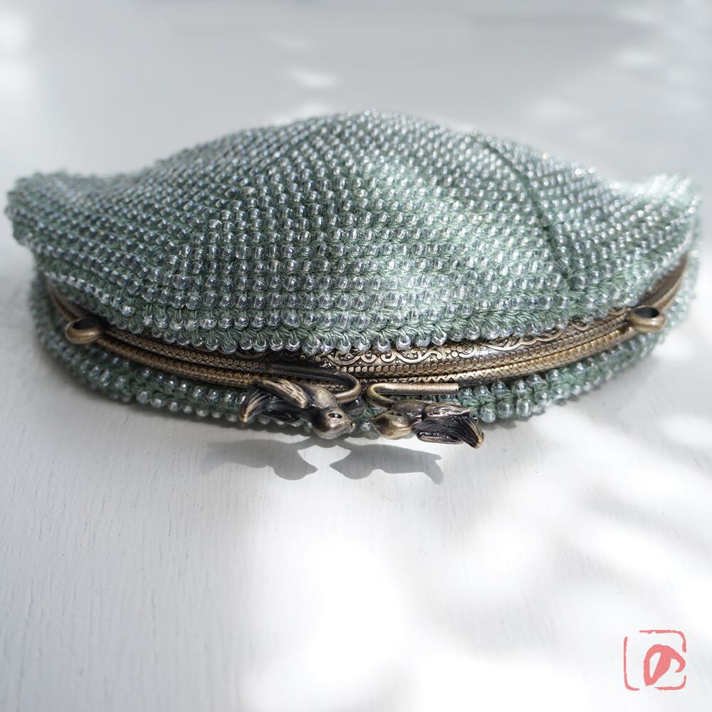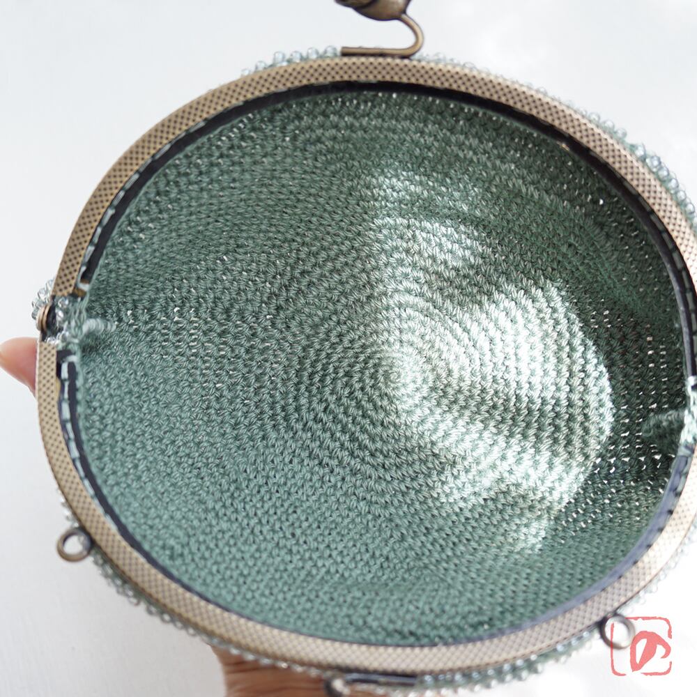なめらかな手触りの編み地には、小鳥つまみの口金を組み合わせてアクセントにしました。