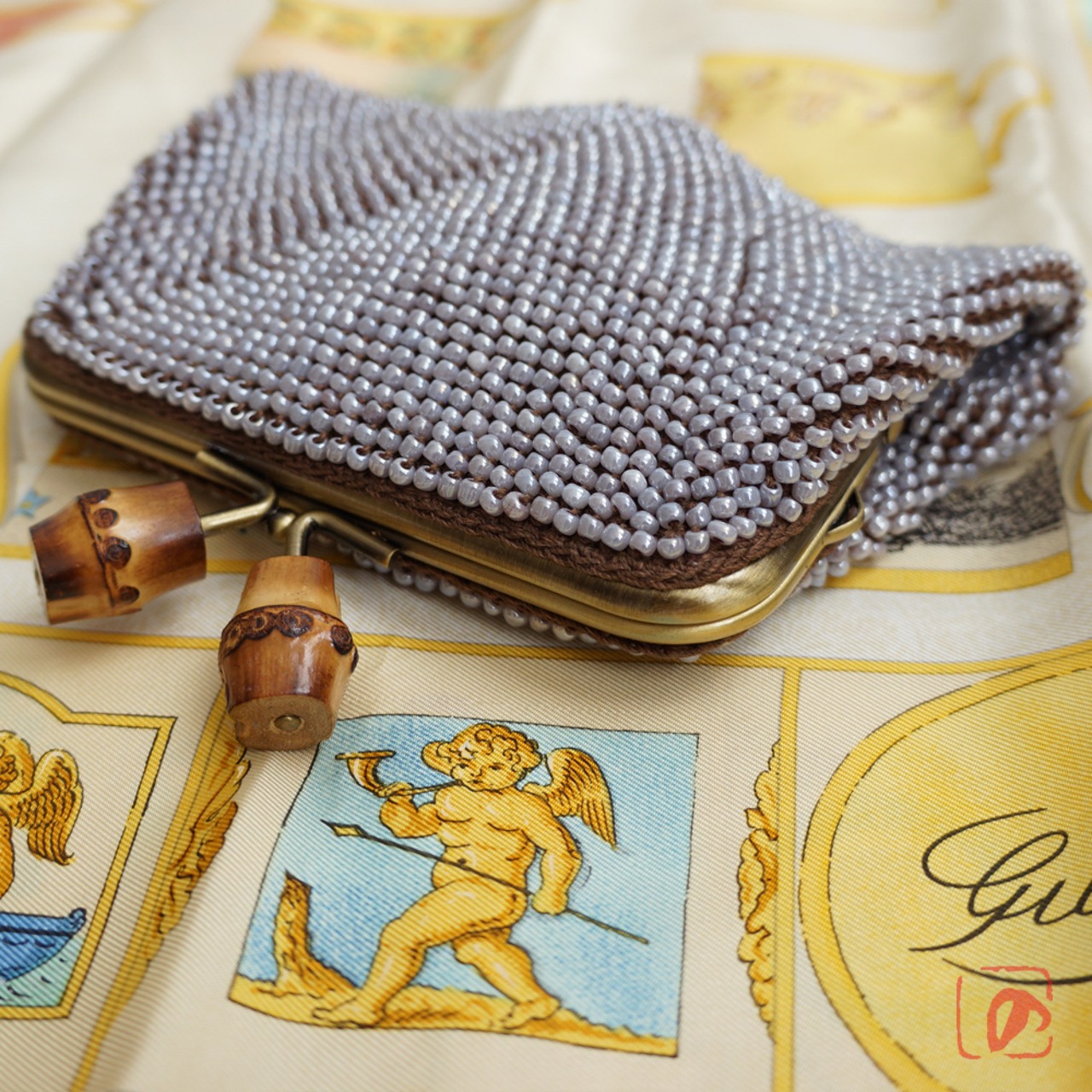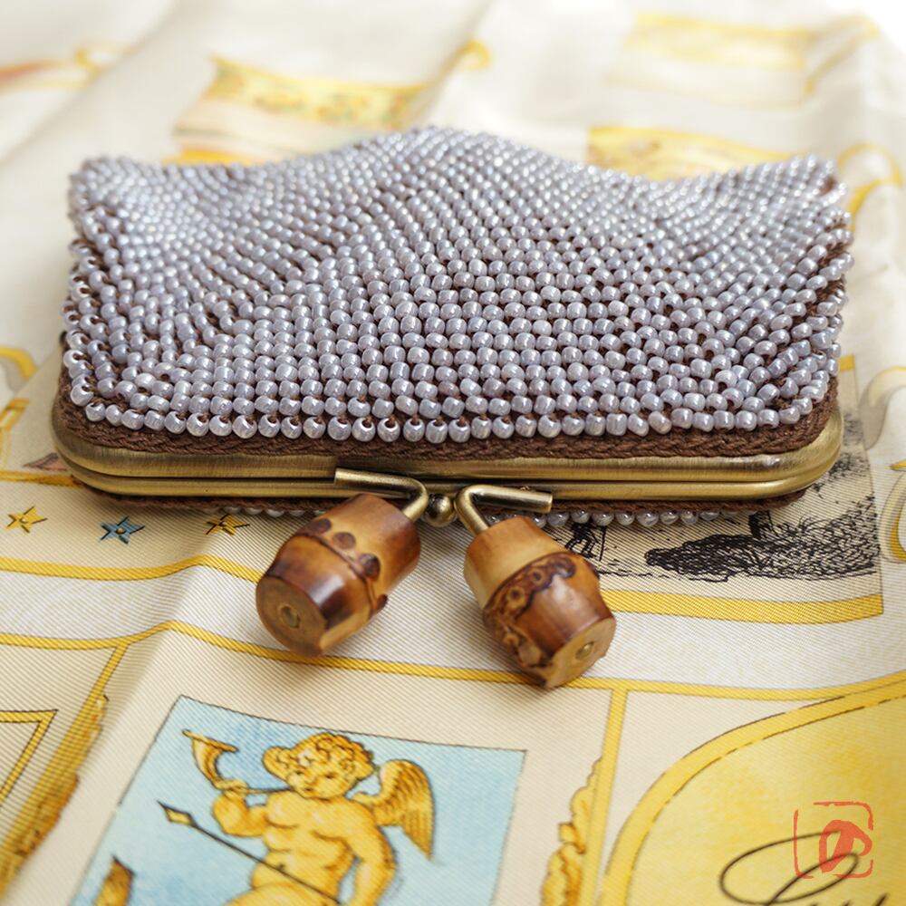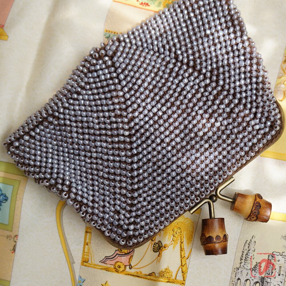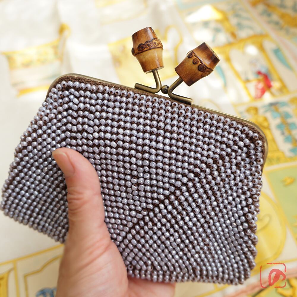 ばあば作☆☆さらに大きめ・ガラスビーズのスクエアがま口(bambus・1531)