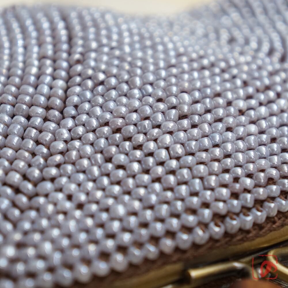 つやのある3mmビーズを、ひとつぶづつ全面に編み込みました。
